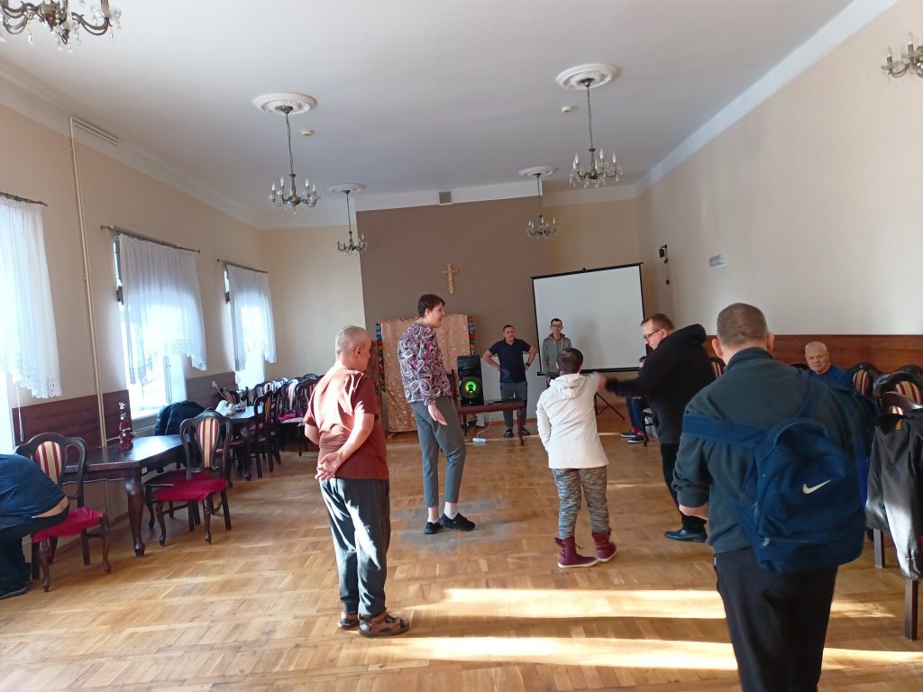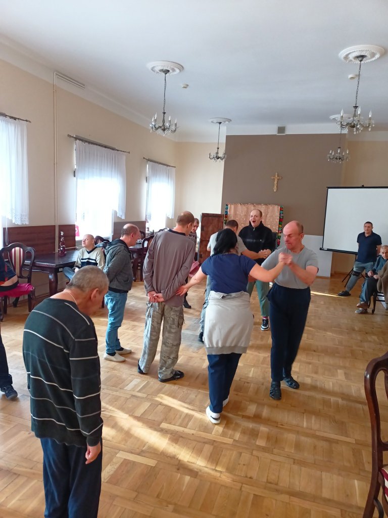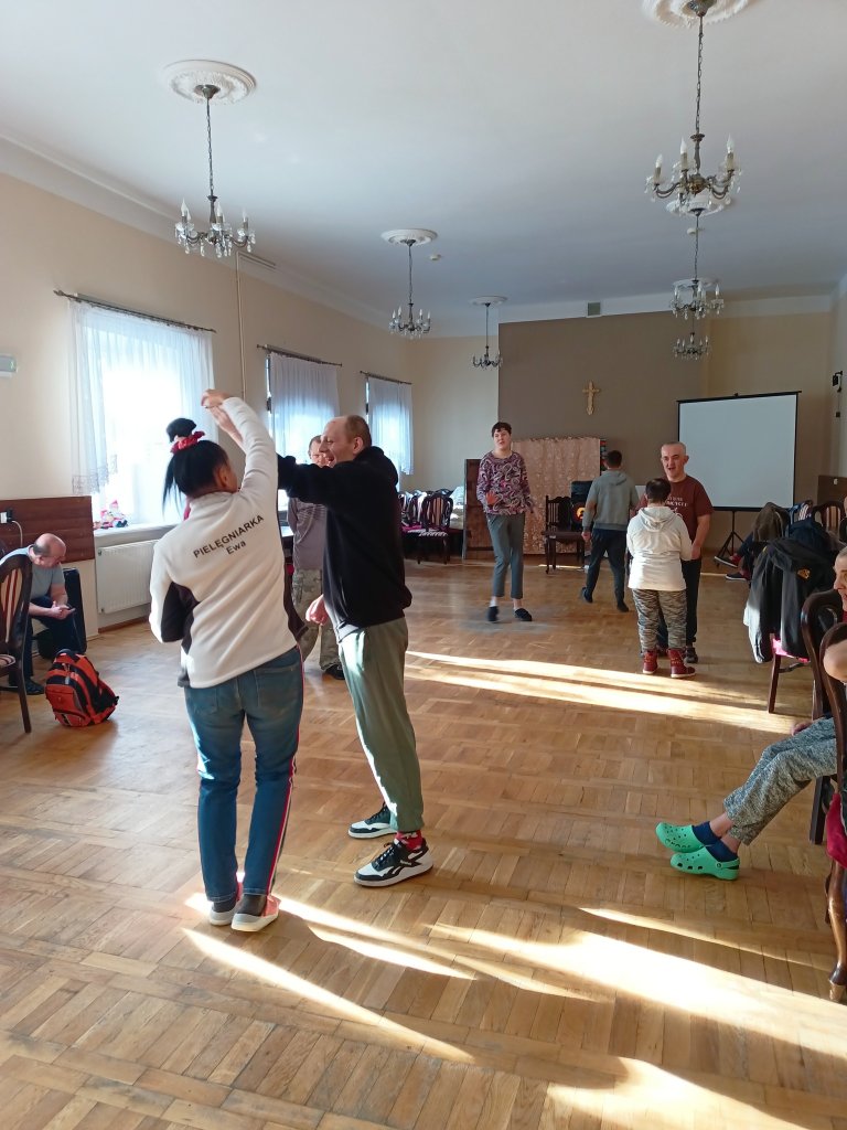 Podczas zabawy tanecznej prowadzonej przez naszych mieszkańców nie brakowało porywających rytmów i ulubionych melodii. Tańczono w parach oraz solo w spontanicznych grupkach.
