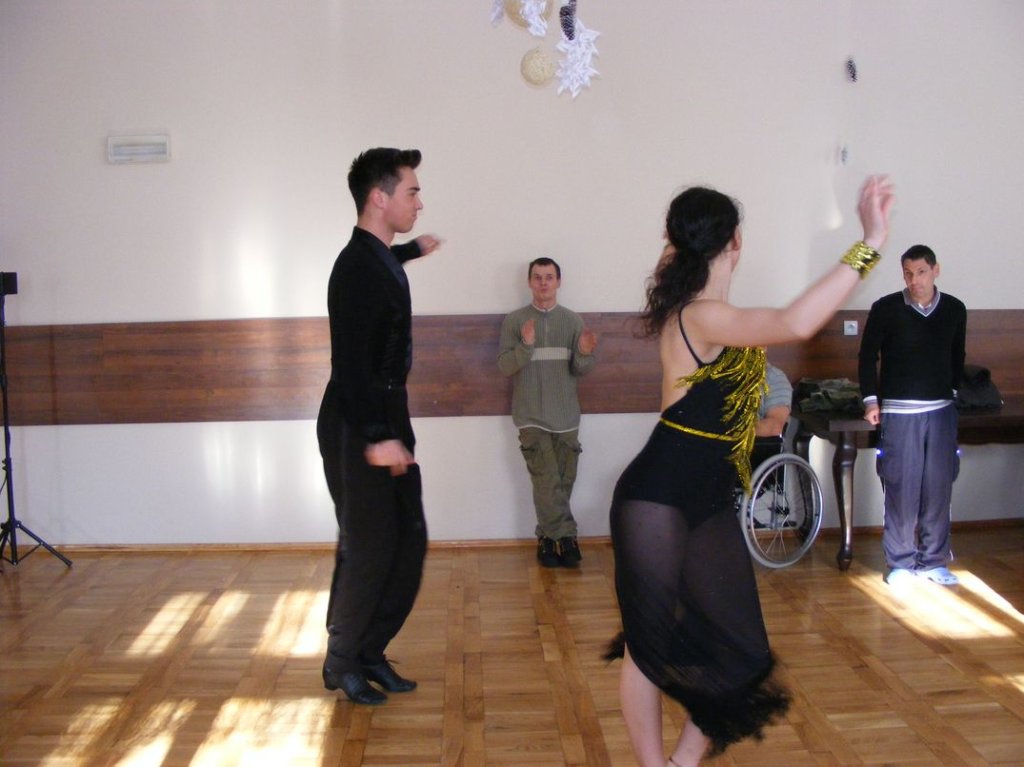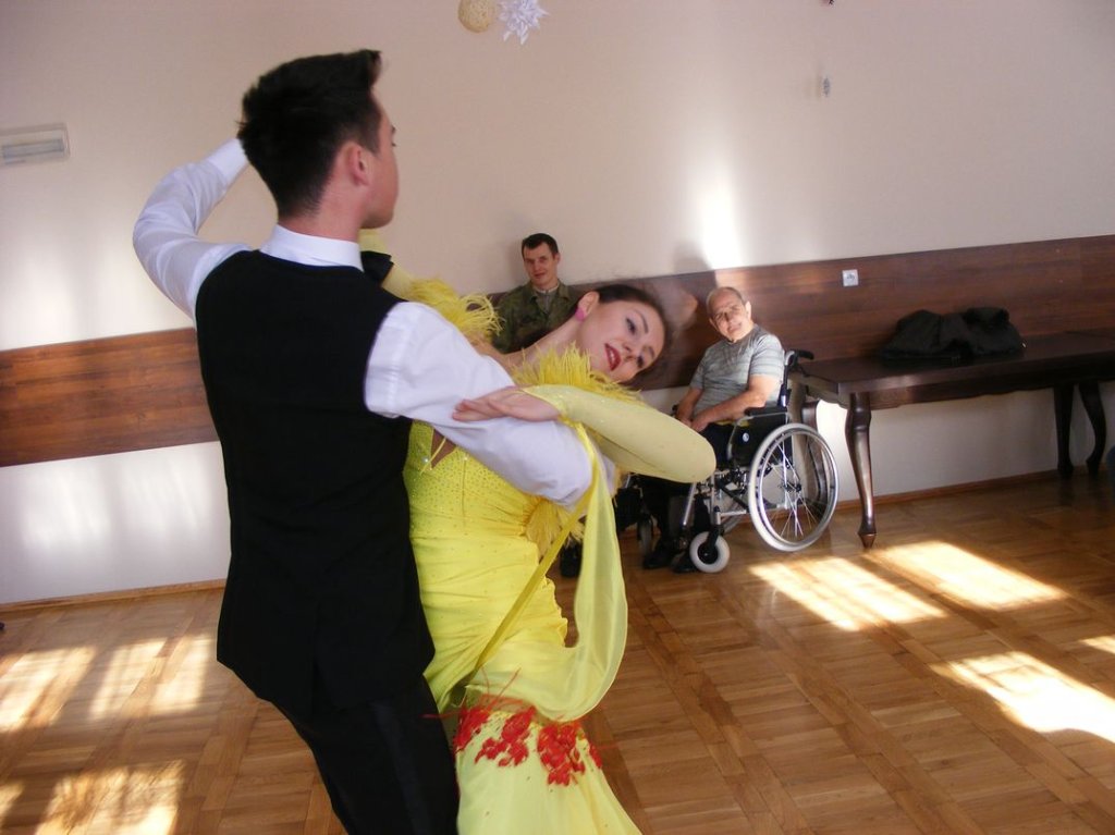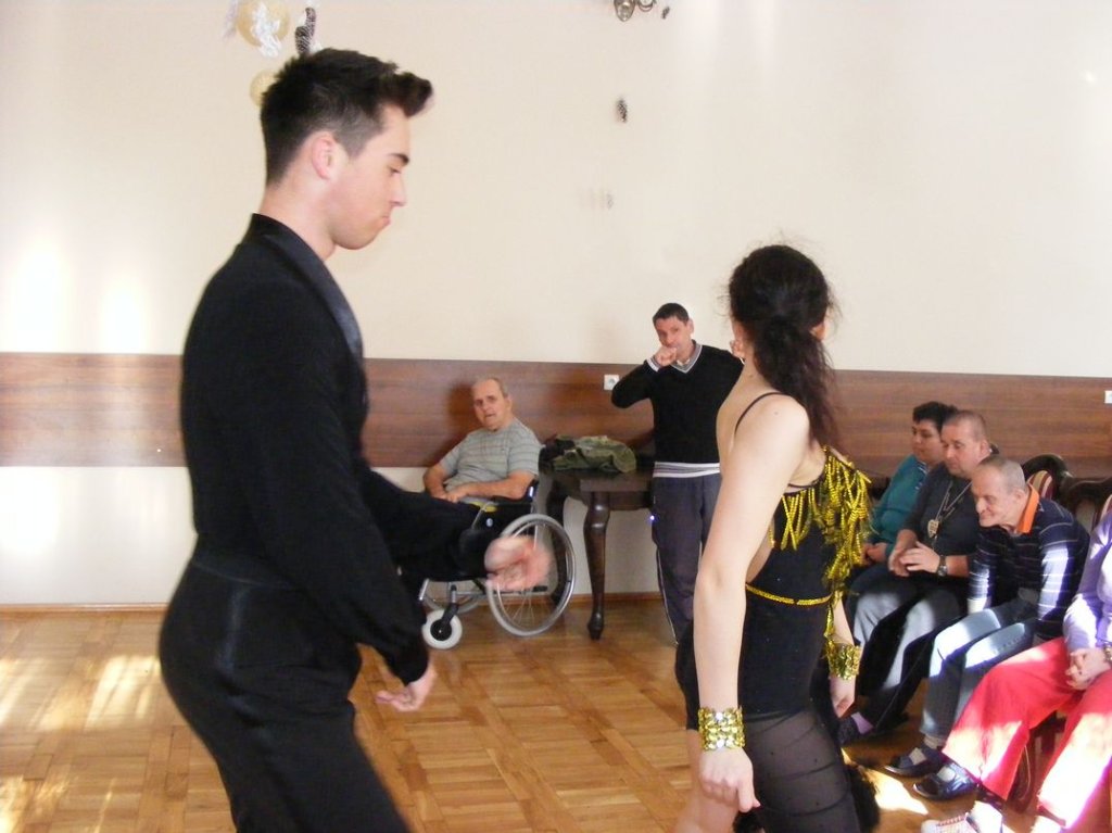 Zespół artystyczny „MANTA” ciągle zaskakuje naszych mieszkańców szeroką gamą artystycznych dokonań. Po grudniowej prezentacji muzyki z dalekiej Afryki, dziś przedstawili wspaniały pokaz tańca towarzyskiego i sportowego. Możemy śmiało powiedzieć że powiew wysokiej kultury musnął nasz zamek. Piękni artyści, przepiękne stroje taneczne połączone z muzyką walca, tanga argentyńskiego, rumby i tańców latynoskich wprawiły w zachwyt wszystkich oglądających.