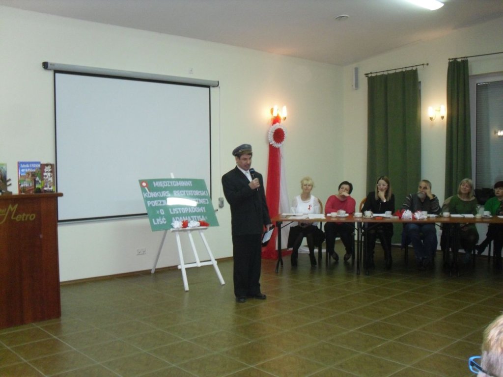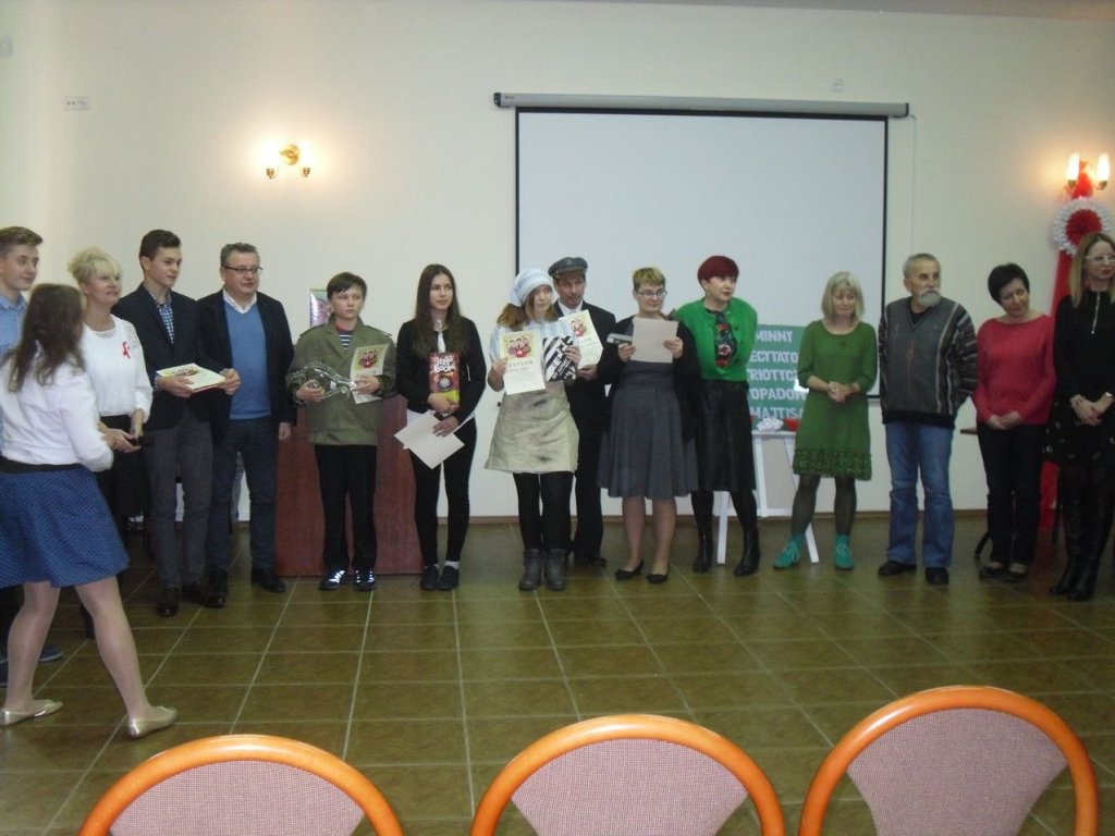 15 listopada 2017 r. w Hotelu „Metro” w Boguszynie po raz pierwszy braliśmy udział w Listopadowych Prezentacjach Literackich 2017 VI Międzygminnym Konkursie Recytatorskim Poezji Patriotycznej SBP o Listopadowy Liść Adamajtisa pod patronatem Wójta Gminy. Przygotowaliśmy się bardzo starannie. Patrycja wyrecytowała pięknie wiersz Cypriana Kamila Norwida „Moja piosnka II” i zdobyła I miejsce i Listopadowy Liść Adamajtisa. Natomiast Waldemar w czapce maciejówce i wąsem a'la Piłsudski wierszem Alfonsa Dzięciołowskiego „Pieśń o Józefie Piłsudskim” zdobył II miejsce. Gratulujemy.
