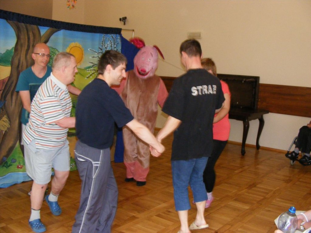 Krakowskie grupy teatralne, które regularnie odwiedzają nasz Dom Pomocy również i w maju zaprezentowały mieszkańcom dwa przedstawienia tj. „Wiosna u Kubusia” i „Zdrówko”. Wspaniała zabawa, interakcyjna forma teatru, niezwykle kolorowo i baśniowo, dostępnie przekazywane treści zawsze gromadzą bardzo dużo widzów i to nie tylko spośród mieszkańców ale i kadry naszej placówki. Są to starannie dobrane widowiska , jakie przekazują widzom artyści i dlatego wpływają bardzo pozytywnie na emocje i odczucia mieszkańców.