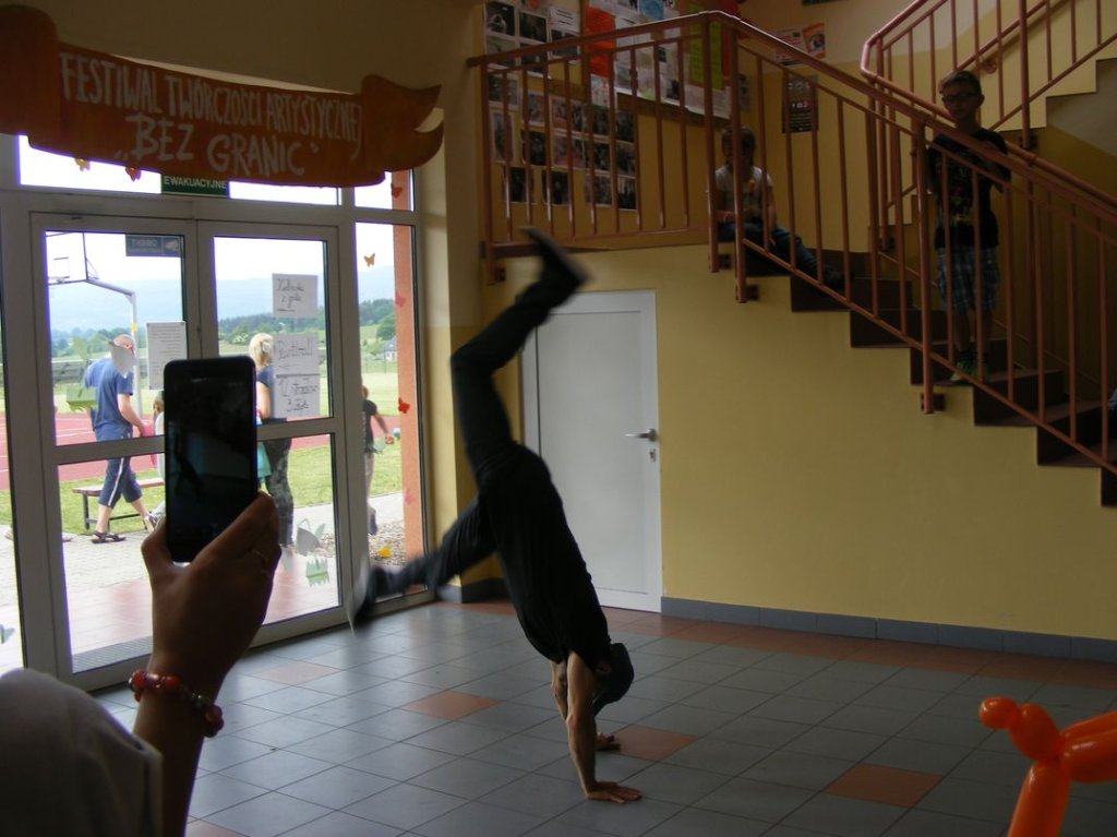 Mimo deszczowej pogody na zewnątrz nie zabrakło pięknych i gorących artystycznych prezentacji w wewnątrz nowoczesnej szkoły.Artyści z Podzamka nie zawiedli. Zarówno Ala ,Patrycja jak i Marian wystąpili wspaniale, doskonale przygotowani przez Panią Bożenę Stanisławską. Dziękujemy serdecznie za zaproszenie.