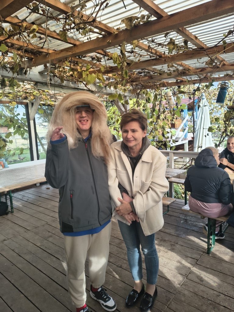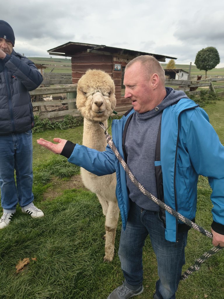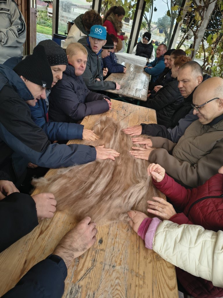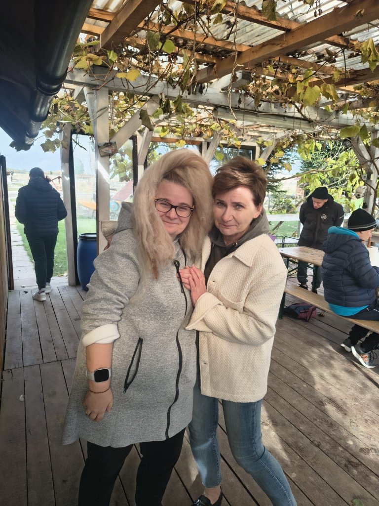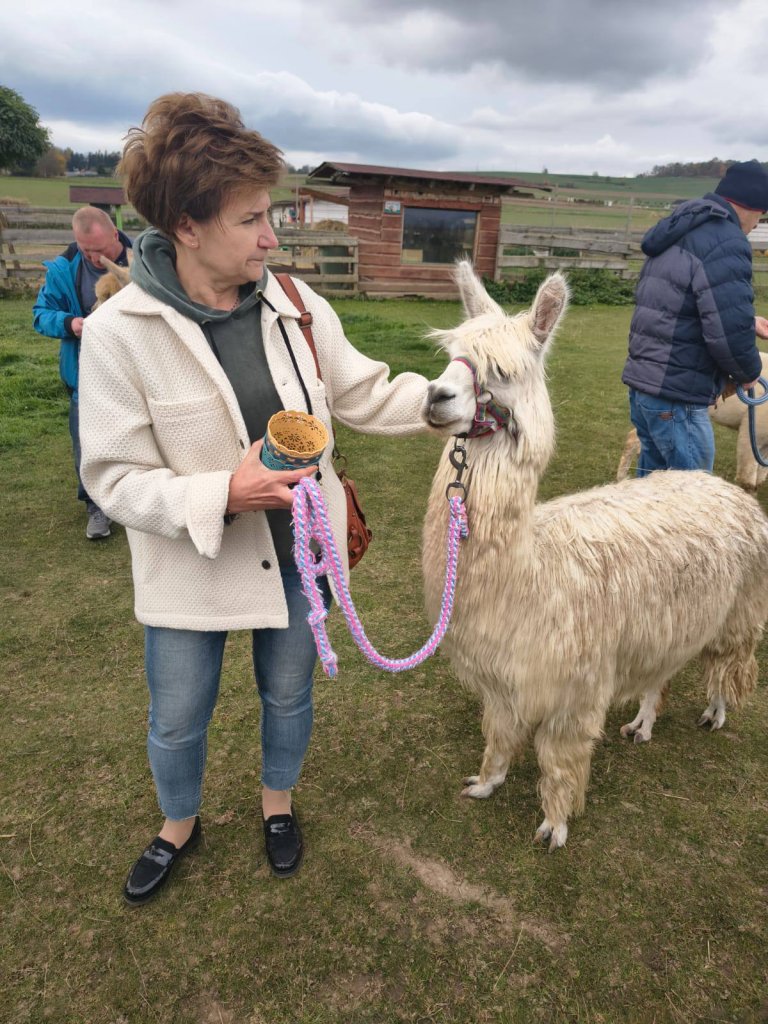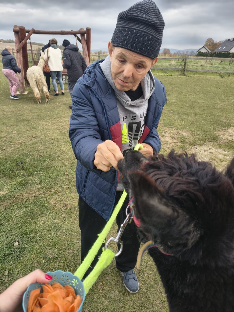Po warsztatach zostaliśmy ugoszczeni pyszną kawką i domowym sernikiem oraz ciastem marchewkowym. Po lekkim odpoczynku ruszyliśmy na spacer z alpakami, który pochłonął naszych mieszkańców. Każdy miał możliwość karmienia oraz spacerowania ze zwierzątkami. Po intensywnym spacerze czekała na nas ugrillowana kiełbaska. Czas spędziliśmy BARDZO ciekawie z ogromnym oddźwiękiem terapeutycznym. Za gościnę serdecznie dziękujemy.