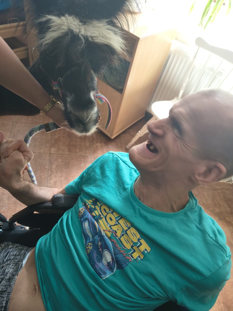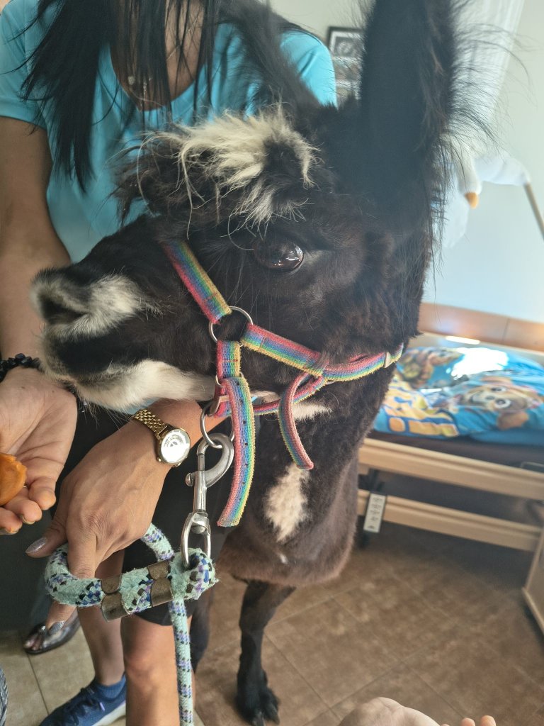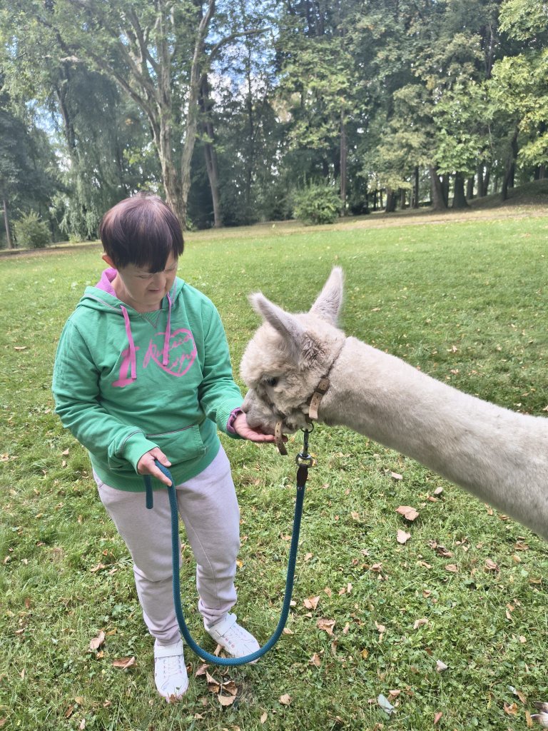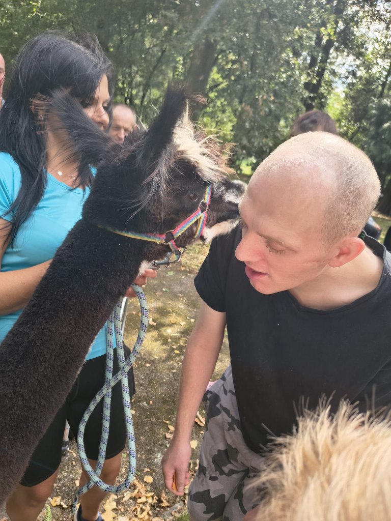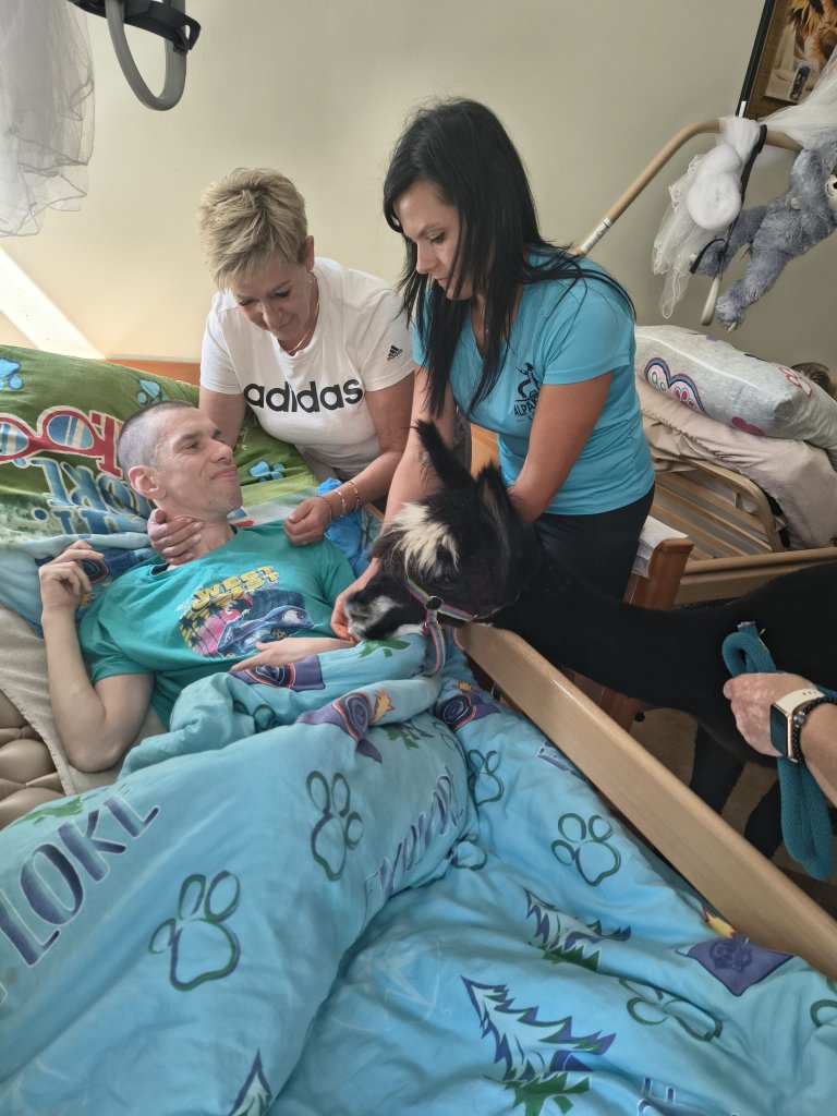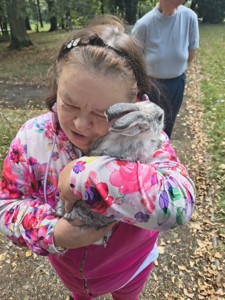 Oryginalne spotkanie naszych mieszkańców z alpakami oraz królikami miało miejsce w naszej placówce. Bezpośredni kontakt ze zwierzętami, możliwość karmienia, głaskanie, oprowadzanie to po prostu fantastyczna forma terapii co widać było na uśmiechniętych i zachwyconych twarzach mieszkańców. Natomiast wizyta alpak na grupie osób leżących, możliwość bliskiego kontaktu z tymi cudownie spokojnymi i przemiłymi wręcz zwierzętami, które w swojej łagodności szczególnie dały się "zaprzyjaźnić" wzbudzając wśród opiekunów i postronnych obserwatorów emocje i niedowierzanie, że tak zwierzę może reagować na chorego człowieka.