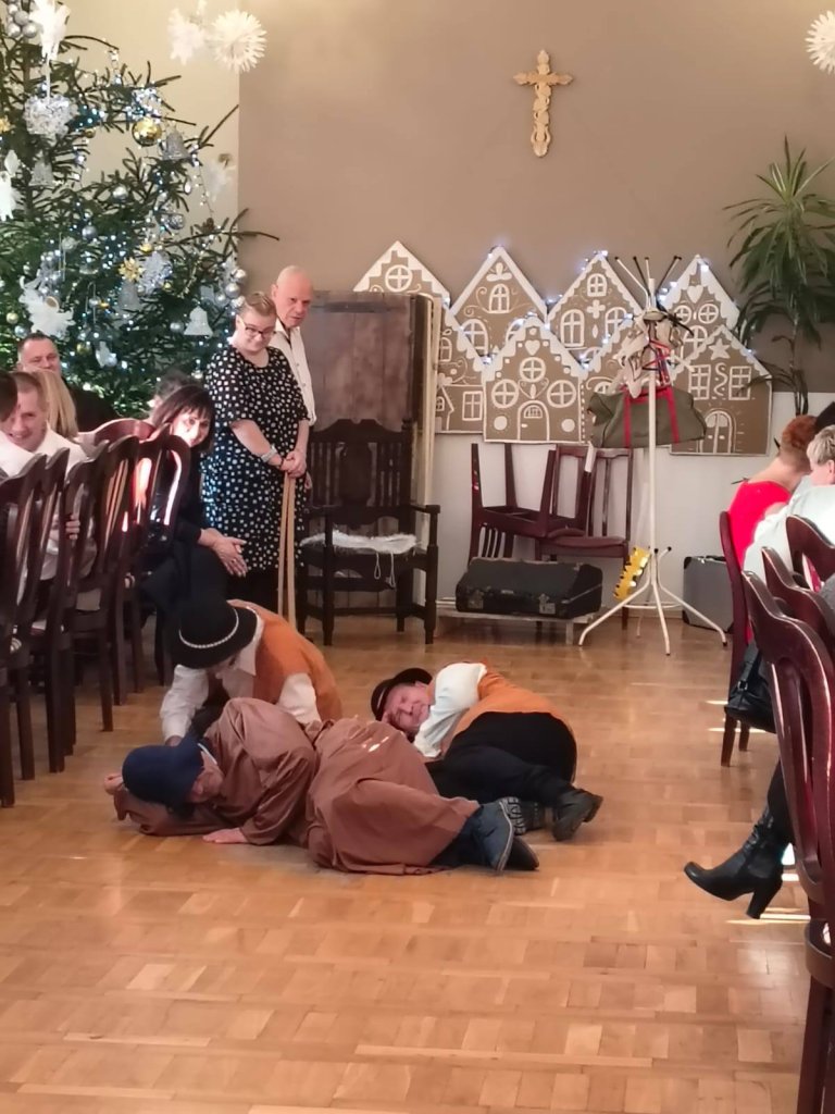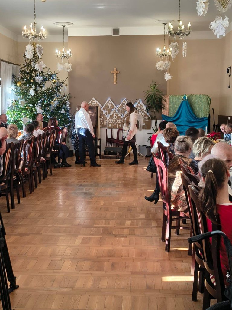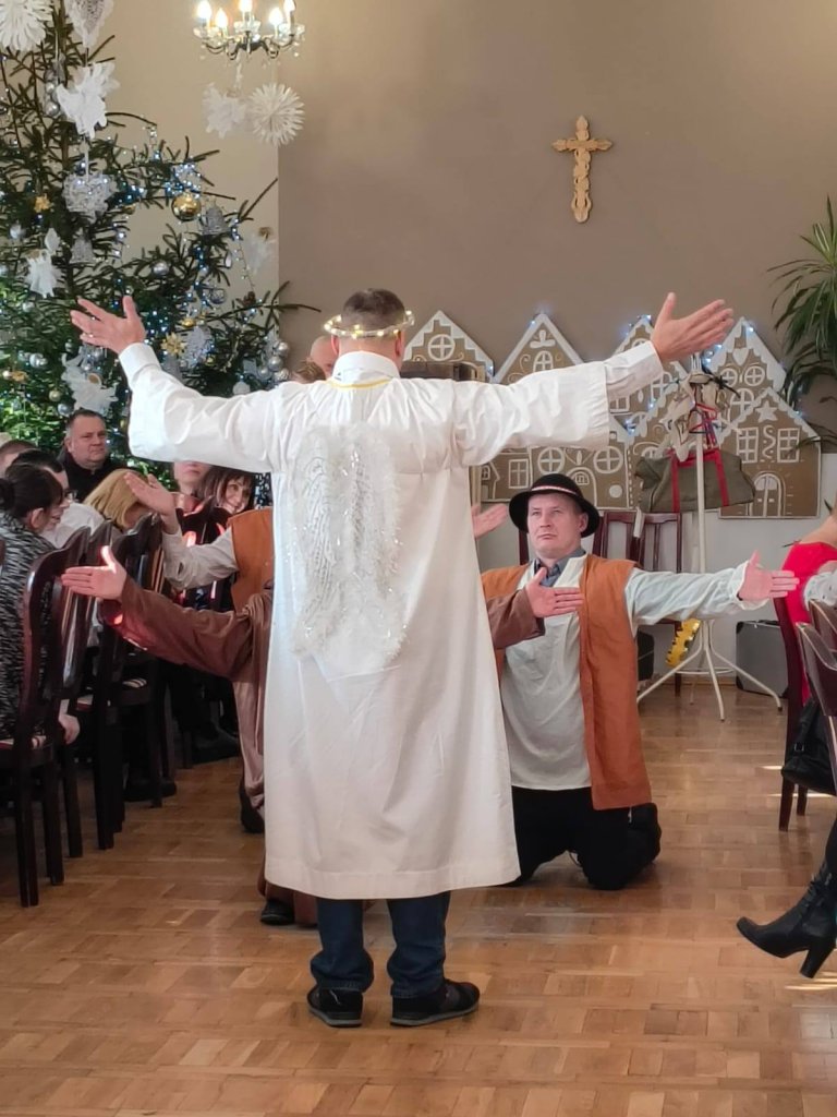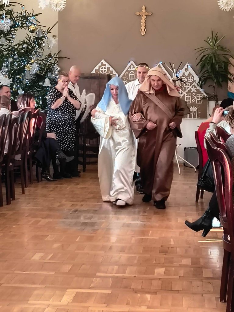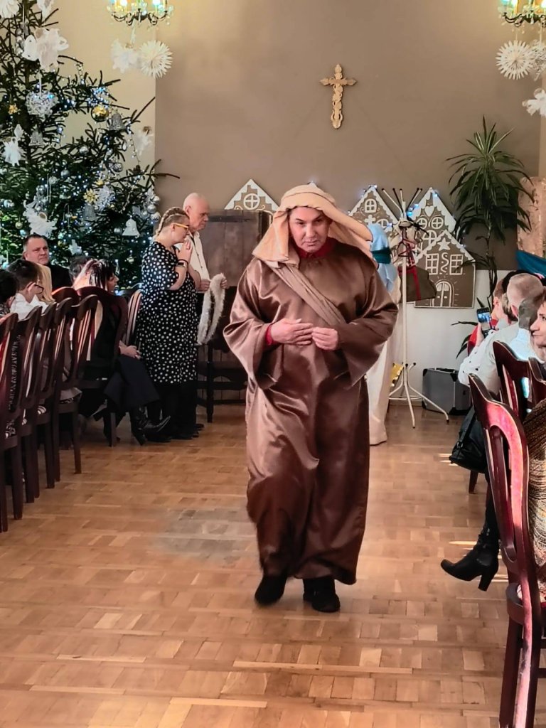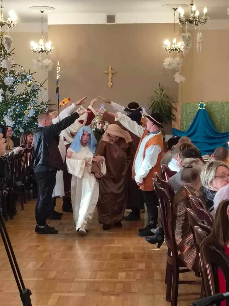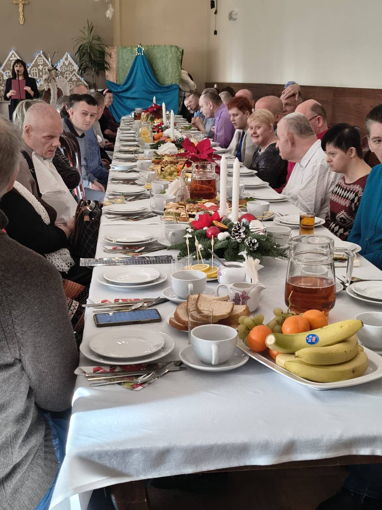 Tradycyjnie tuż przed Świętami Bożego Narodzenia w naszym domu ma miejsce spotkanie wigilijne mieszkańców z rodzinami. Wspólna kolacja wigilijna, dzielenie się opłatkiem, śpiewanie kolęd, modlitwa oraz oglądanie jasełek w wykonaniu mieszkańców wprawia wszystkich w magiczny klimat świąt. W tym roku gościliśmy również Wicestarostę Powiatu Kłodzkiego Pana Piotra Marchewkę, Wójta Gminy Kłodzko Pana Zbigniewa Tura, Radnego Gminy Kłodzko Pana Krzysztofa Rybę, o. Jonasza OFM oraz Dyrektora PCPR Pana Bogumiła Zwardonia.