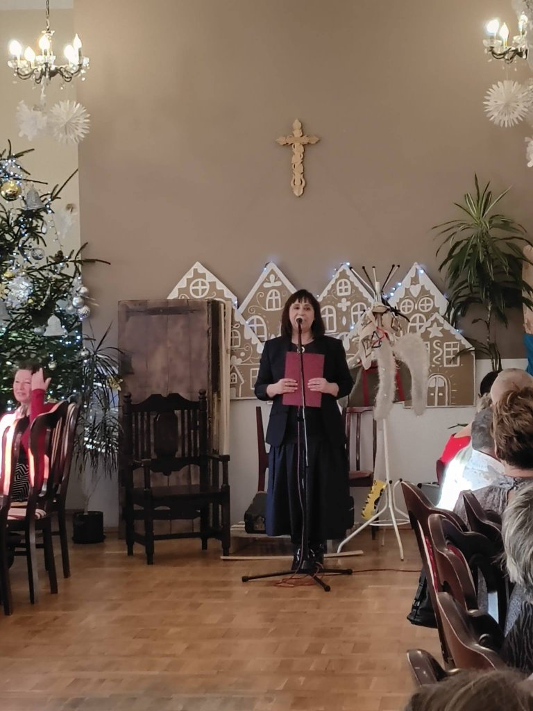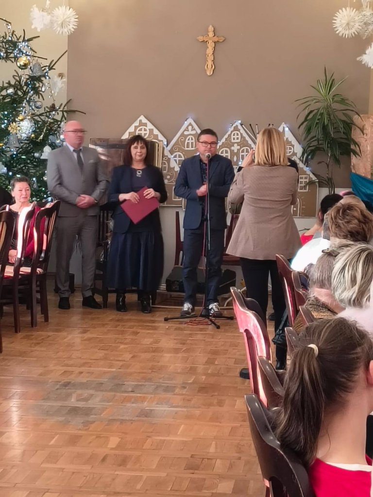Witając gości Dyrektor domu Pani Jolanta Leszko podkreśliła jak ważną rolę dla niej i pracowników spełniają mieszkańcy. Klimat Świąt Bożego Narodzenia wyzwala wiele uczuć, pozytywnych emocji, przemyśleń powodując, że jesteśmy lepsi i staramy się z drugim człowiekiem dzielić tym co mamy w sobie najpiękniejszego.