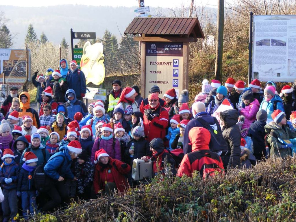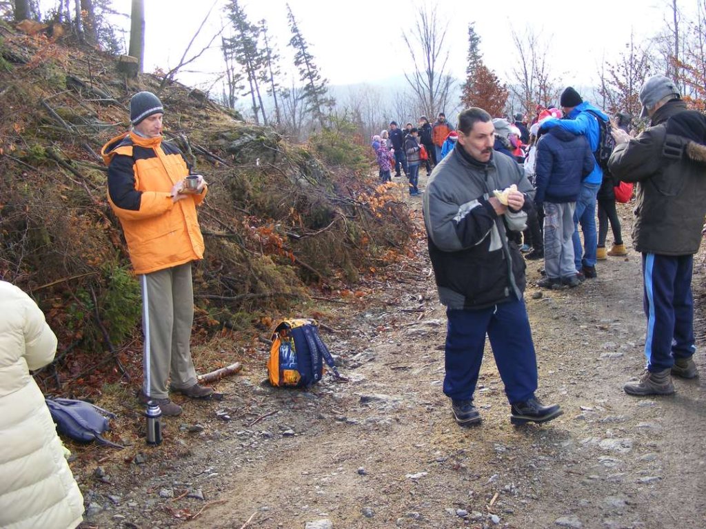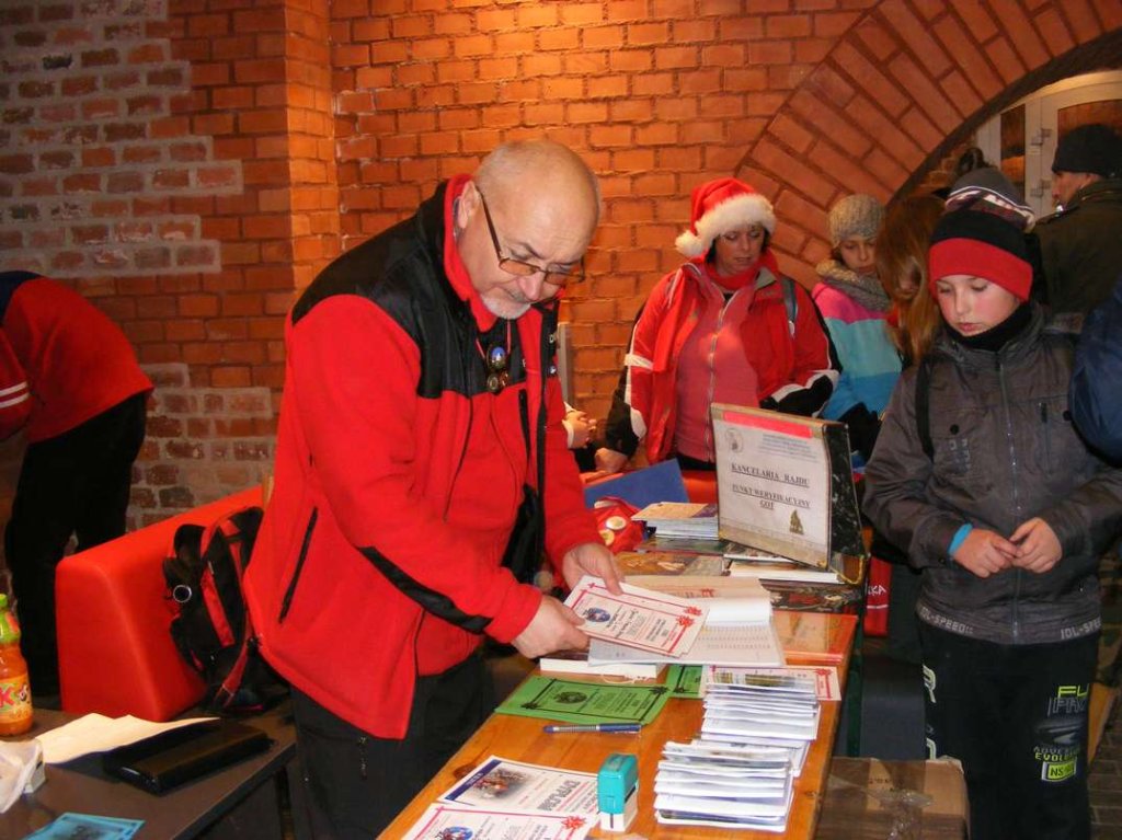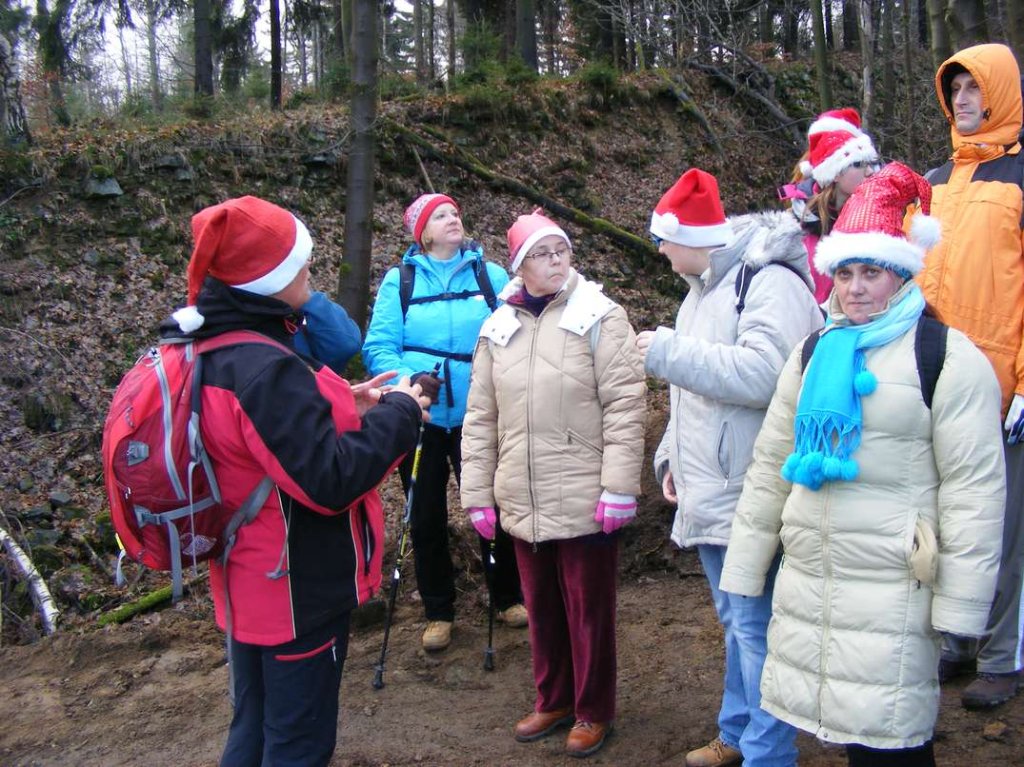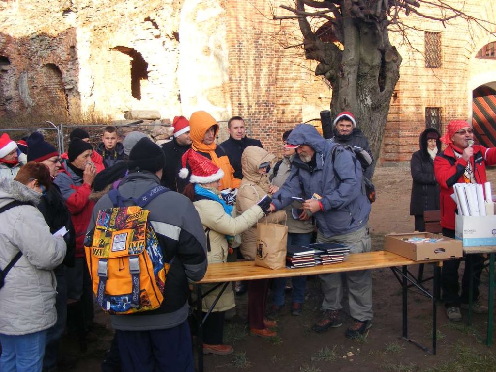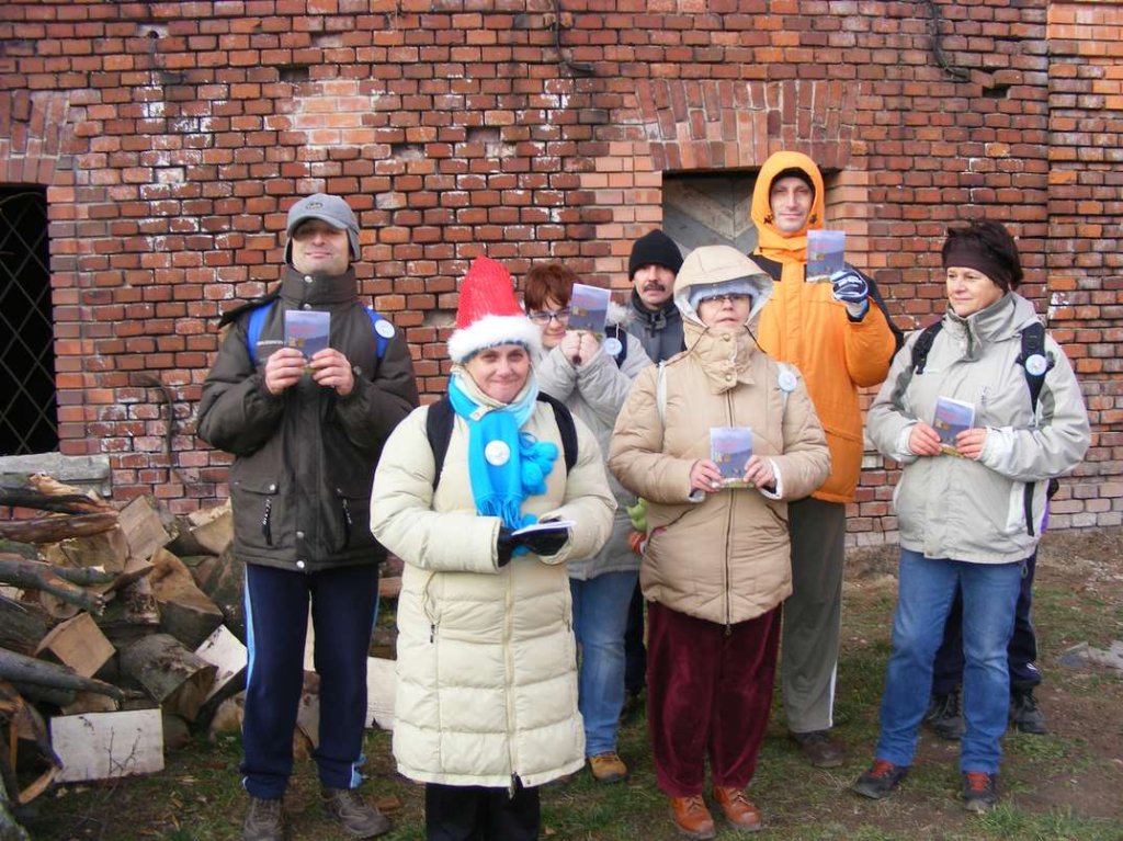 Prowadziła ona Srebrna Góra – Przełęcz Srebrna – Chochoł Mały-Warowna Góra – fort DON – JON- Srebrna Góra. Był to ostatni rajd, który zorganizował Witold Barylak – główny organizator wszystkich rajdów. Nie zabrakło wielu zasłużonych podziękowań i wyrazów wdzięczności – słowa podziękowania skierowali Burmistrz Ząbkowic Marian Orzeszek, Starosta Ząbkowic – Roman Fenster, Wójt Gminy Stoszowice Paweł Gancarz, Wiceburmistrz Ziębic Janina Lacel, oraz przedstawiciele szkół. Nasza grupa również podziękowała Witkowi za zaproszenia na rajdy i serce, które nam w nich okazywał. Andrzej z Jasiem zaśpiewał hymn niepełnosprawnych „My też możemy się śmiać -wzbudzający w każdym chwilę refleksji. Zostały też wręczone przez przewodnika naszym mieszkańcom książeczki GOTT PTTK. Waldek i Sabina otrzymali odznaki brązowe, a pozostali – popularne. Zmęczeni, trochę zmarznięci zeszliśmy do Srebrnej Góry po drodze zatrzymując się na Jarmarku Świątecznym. Oj, ciężki był wybór – wszystko było kolorowe, piękne i pachnące. Wybraliśmy świąteczne pierniki pięknie udekorowane i coś dla podniebienia – oscypka z żurawiną na ciepło. Na zakończenie postanowiliśmy, że dalej będziemy poznawać nasze piękne góry i zdobywać kolejne punkty.