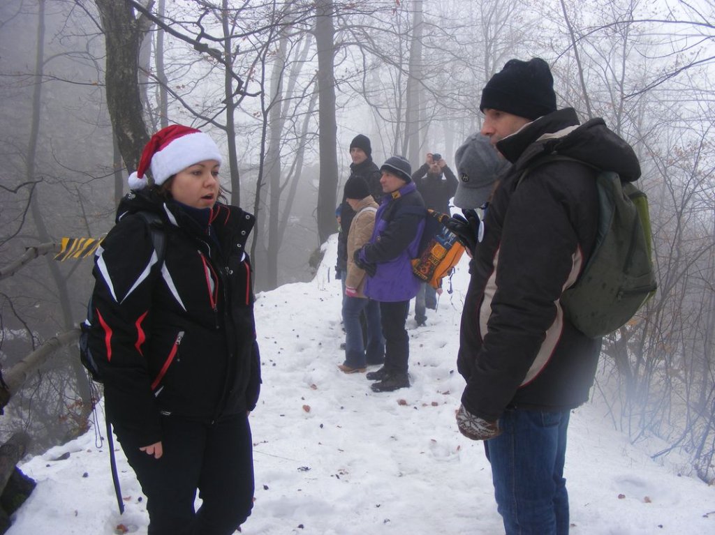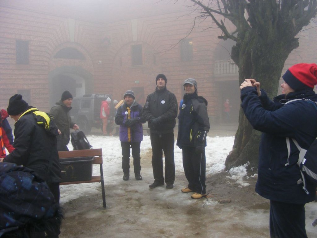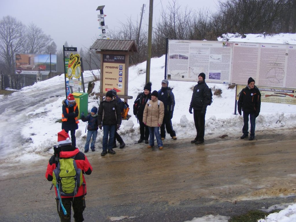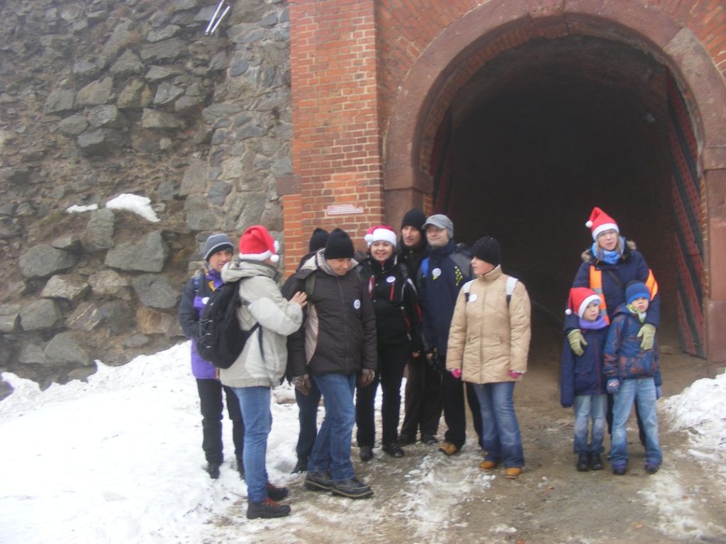 Na części trasy powyżej 650 m panowały trudne warunki pogodowe. około 10 cm mokrego i zmrożonego śniegu oraz mgła. Ze względu na te warunki trasa została zmieniona i szlakiem czerwonym podnóżem Warownej Góry dotarliśmy do fortu DON JON. Podczas postojów przewodnicy opowiadali o historii regionu, przyrodzie i turystyce. Nie obyło się bez upadków, ale wszystko zakończyło się szczęśliwie. Na szlaku Andrzej pomagał Sabince żeby nie upadła. Jeszcze tylko zwiedzanie Twierdzy z przewodnikiem. Niestety nie mogliśmy podziwiać pięknych widoków -utrudniała nam gęsta mgła i silny wiatr. Na zakończenie zjedliśmy kiełbaski upieczone na ognisku i powrót. W drodze powrotnej wstąpiliśmy na Sowiogórski Jarmark Bożonarodzeniowy. A tam spróbowaliśmy pysznego ciasta, oscypków na ciepło z boczkiem i żurawiną. Zmarznięci, zmęczeni, ale zadowoleni wróciliśmy do Domu.