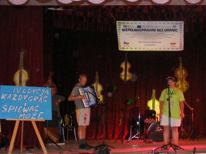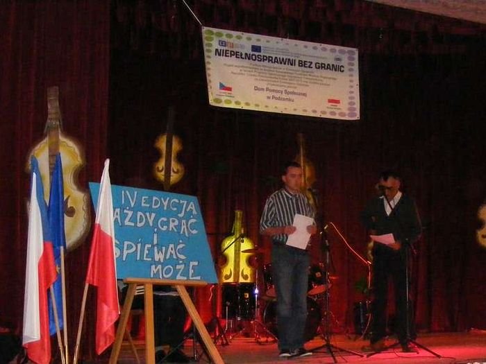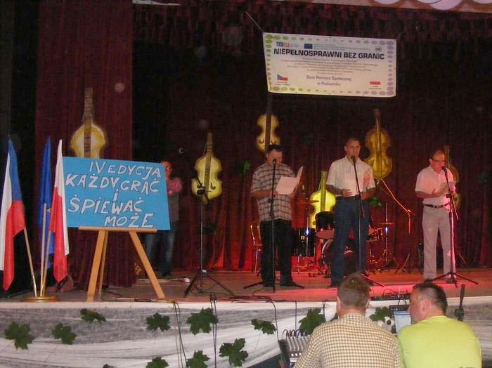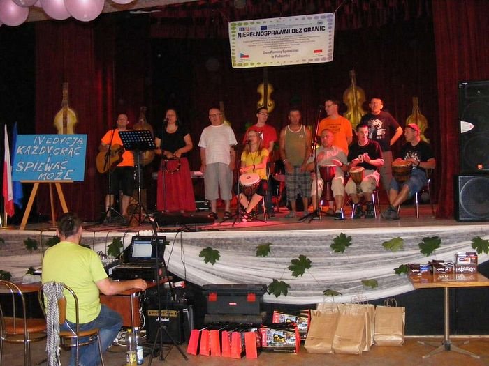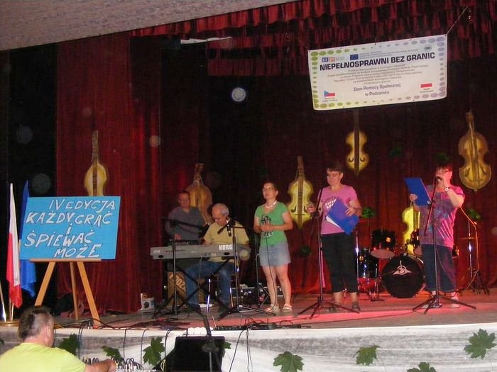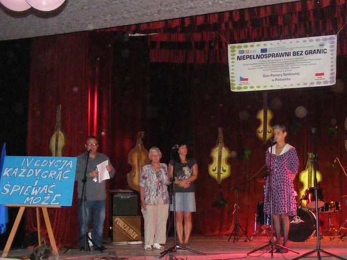 W dniu 19.07.2013 r. odbyło się kolejne spotkanie organizowane przez DPS Podzamek i Ośrodek Kultury Sportu i Rekreacji Gminy Kłodzko w Ołdrzychowicach Kłodzkich w ramach projektu „Niepełnosprawni Bez Granic". Tym razem rozpoczęto imprezę integracyjną IV Edycją „Każdy grać i śpiewać może", w której udział wzięli zaproszeni goście: Domov pod hradem Žampach, DPS Szarocin, DPS Szczytna, DPS Nowa Ruda, DPS Jaskulin, DPS Bystrzyca Kłodzka, Powiatowy Środowiskowy Dom Samopomocy w Kłodzku, DPS Ścinawka Dolna, DPS Jugów oraz Zastępca Wójta Gminy Kłodzko Pani Urszula Panterałka, Pan Maciej Awiżeń Starosta Powiatu Kłodzkiego, Pani Mariola Huzar Dyrektor Publicznej Biblioteki Gminy Kłodzko. Zaproszone DPS-y zaprezentowały na scenie swoje programy artystyczne.