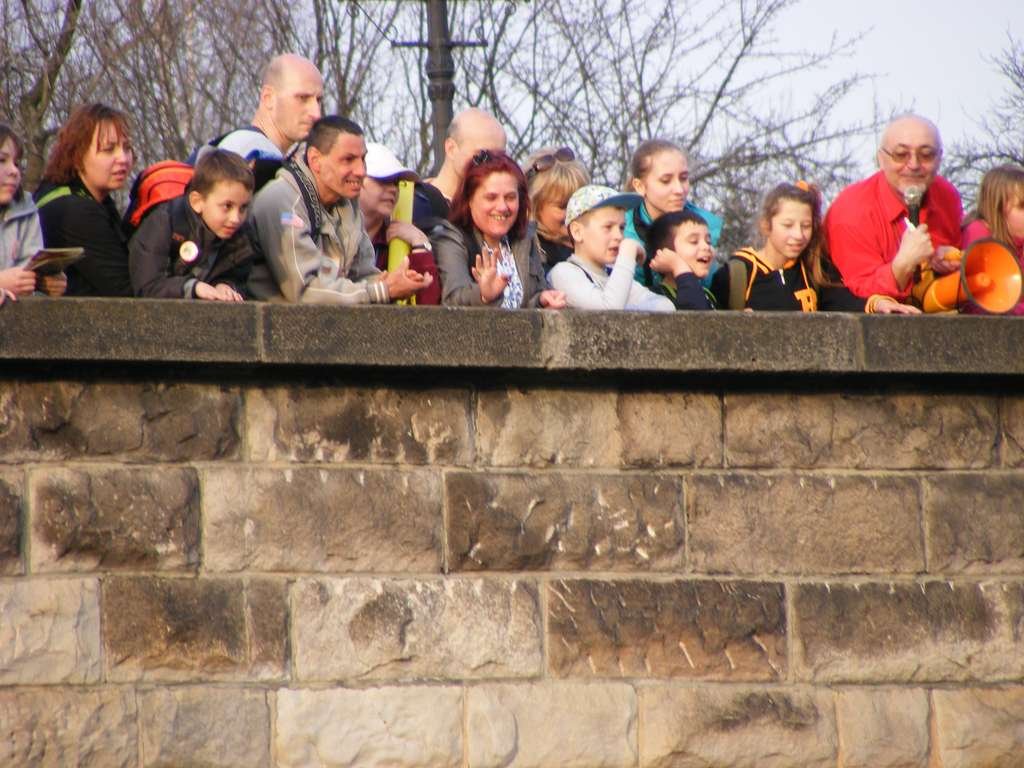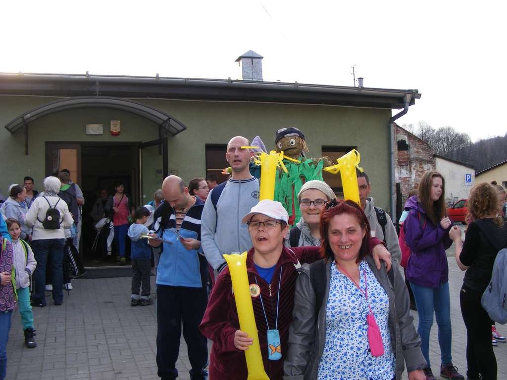 Wszystkich za serce ujęła piosenka „My też możemy się śmiać”. Ale to nie koniec atrakcji – na zakolu Nysy Kłodzkiej odbyły się zawody strzeleckie z broni pneumatycznej. Swoich sił spróbowali Jasiu, Andrzej i Waldek. Były też przeprowadzone konkursy wiedzy przyrodniczej i wiedzy turystycznej. Przy ognisku upiekliśmy kiełbaski. „Aktywnym na trasie” został Andrzej i Jasiu. Potem w Centrum Kultury i Promocji odbyła się prezentacja zdjęciowa z ubiegłorocznych rajdów. Na zakończenie wrzucono marzanny do Nysy jako symboliczny staropolski sposób pożegnania zimy. W rajdzie uczestniczyło 437 osób w tym 52 to osoby niepełnosprawne. Trochę zmęczeni, ale zadowoleni wróciliśmy do Podzamka. A wszystko to dzięki Stowarzyszeniu Inicjatyw na Rzecz Dzieci Ziemi Ząbkowickiej, które zaprosiło nas na ten rajd . Bardzo im za to dziękujemy.