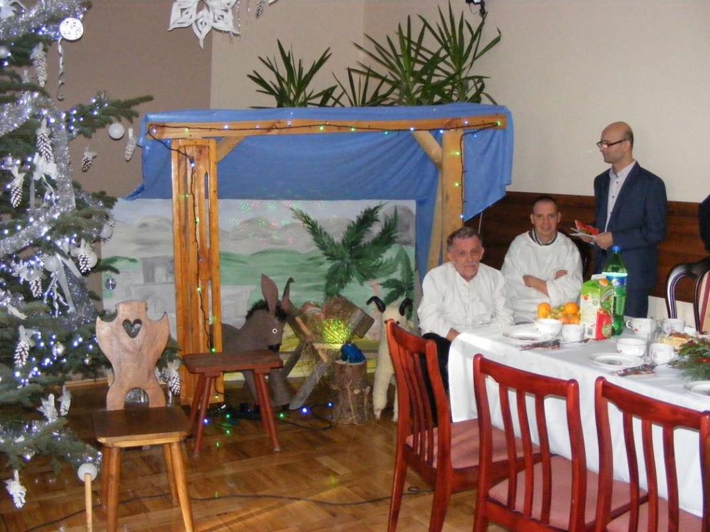 Każdego roku w okresie przedświątecznym organizowane jest uroczyste spotkanie wigilijne mieszkańców Domu Pomocy Społecznej w Podzamku z rodzinami, które odwiedzają swoich bliskich. Łamanie się opłatkiem, potrawy wigilijne, wspólne oglądanie przygotowanych przez mieszkańców jasełek, przepięknie ubrana choinka, kolędy, wszystko to tworzy niepowtarzalny nastrój. W tym roku mieliśmy na naszym spotkaniu zacnych gości, swoją obecnością zaszczycił nas Starosta Powiatu Kłodzkiego Pan Maciej Awiżeń, zastępca Starosty Pani Małgorzata Skrzypczyk- Jędrzejewska oraz Proboszcz o. Emanuel Krzysztof Żak.