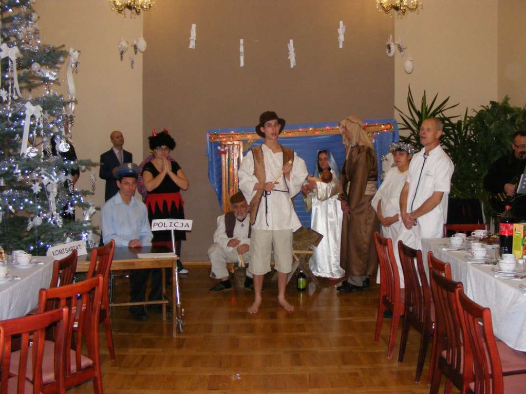 Każdego roku mieszkańcy naszej Placówki wspólnie z pracownikami i swoimi rodzinami spotykają się na Wigilii która dzięki wspaniałemu świątecznemu nastrojowi bardzo zbliża wszystkich do siebie. Wigilię rozpoczęliśmy modlitwą którą w tym roku celebrował Proboszcz o. Emanuel Mieszkańcy przedstawili jasełka które w sposób wesoły i dostępny opisują czasy Jezusa z Nazaretu. Nad całością programu artystycznego czuwała Pani Bożena Stanisławska [autorka wspaniałych kostiumów i ciekawych narracji].