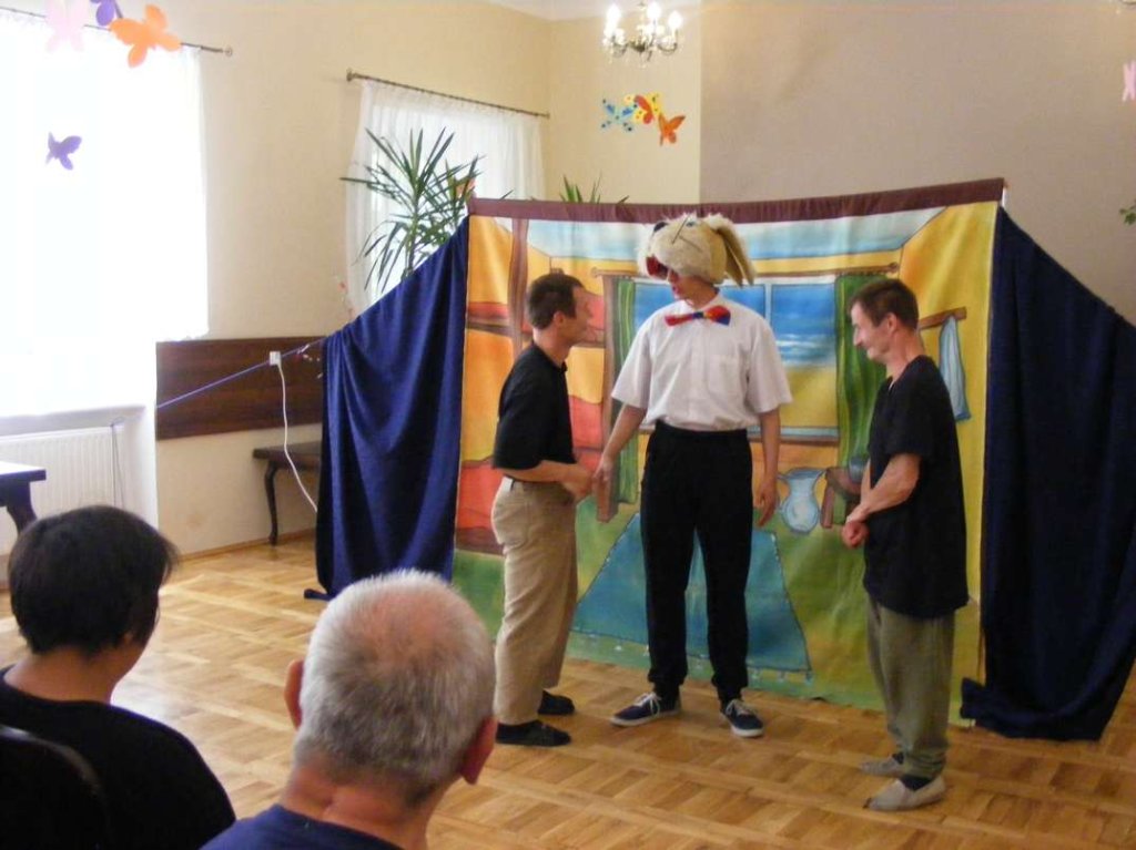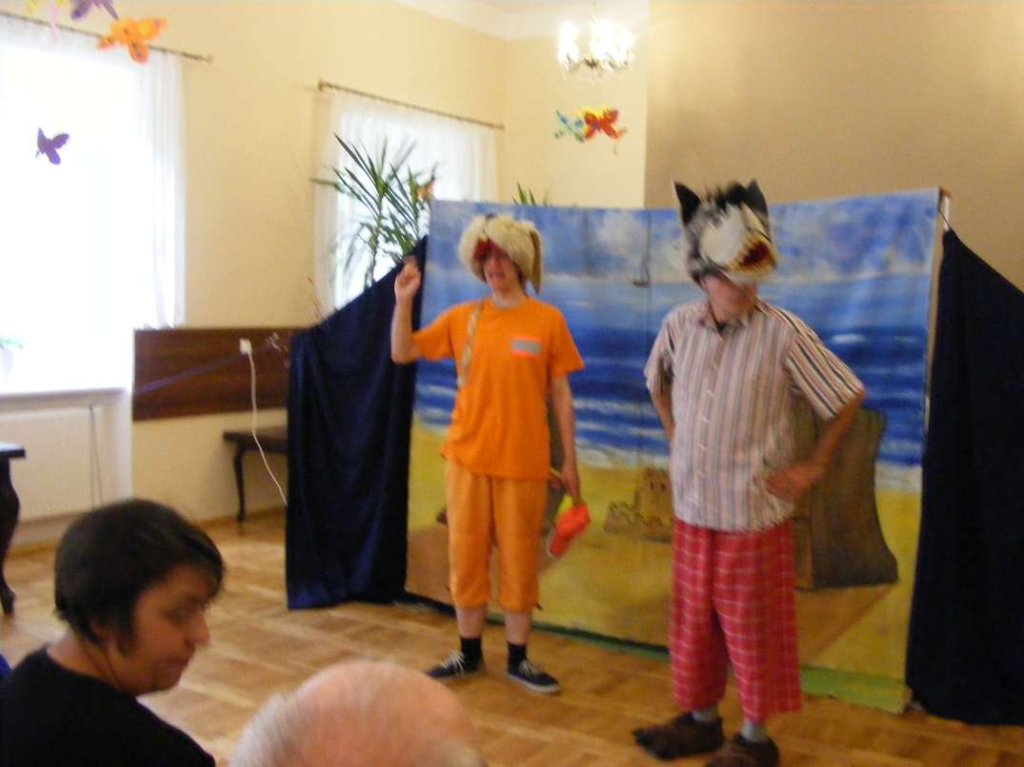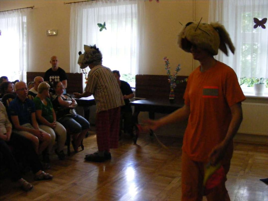 Pod takim tytułem Teatr z Krakowa przedstawił naszym mieszkańcom kolejną sztukę teatralną w dniu 16 czerwca br. Pełne humoru, ciekawych zwrotów akcji przedstawienie dało jak zwykle bardzo dużo zadowolenia mieszkańcom i masę wrażeń. Mogło by się wydawać że dość częste wizyty aktorów teatralnych mogą się znudzić naszym mieszkańcom, nic bardziej mylnego. Starannie dobrana tematyka przedstawień, wzajemna interaktywna współpraca podczas występów artystów przynosi doskonałe efekty w tej formie terapii.