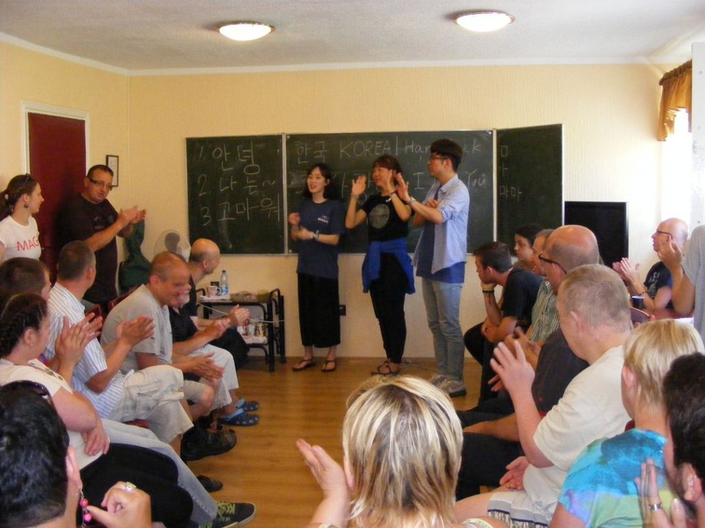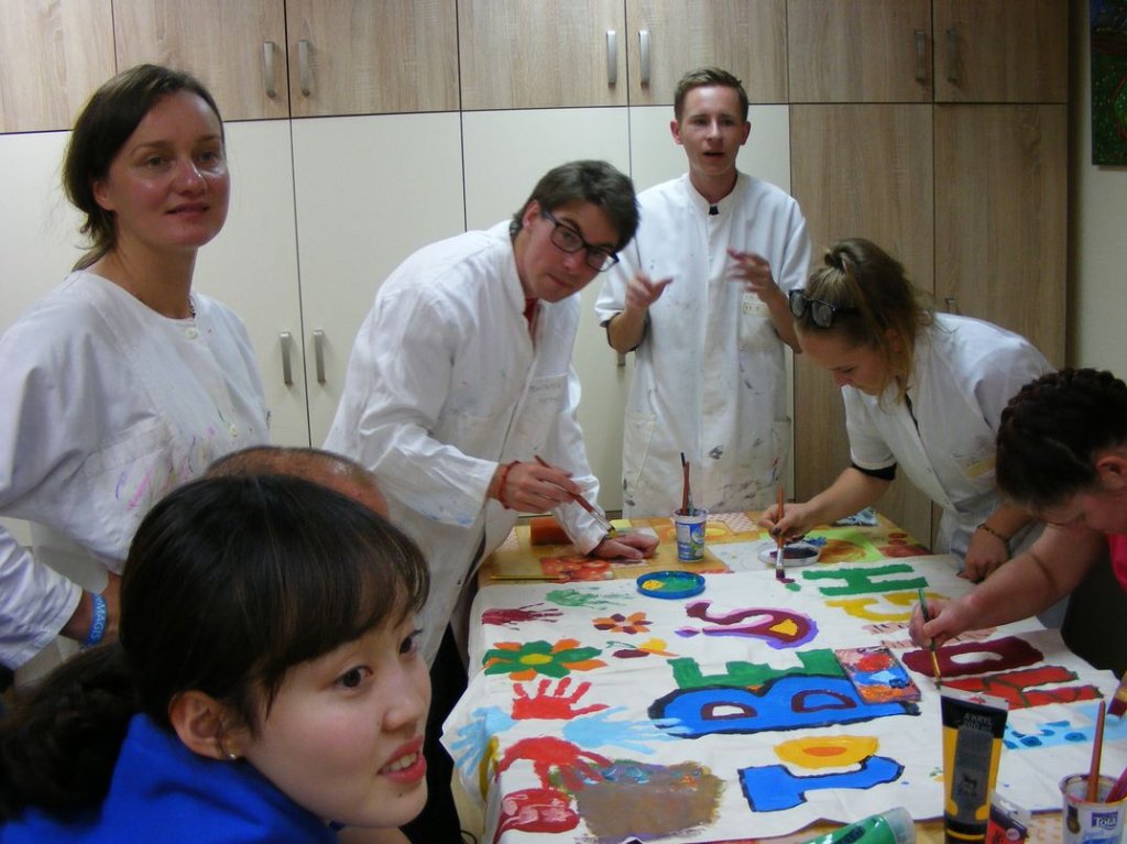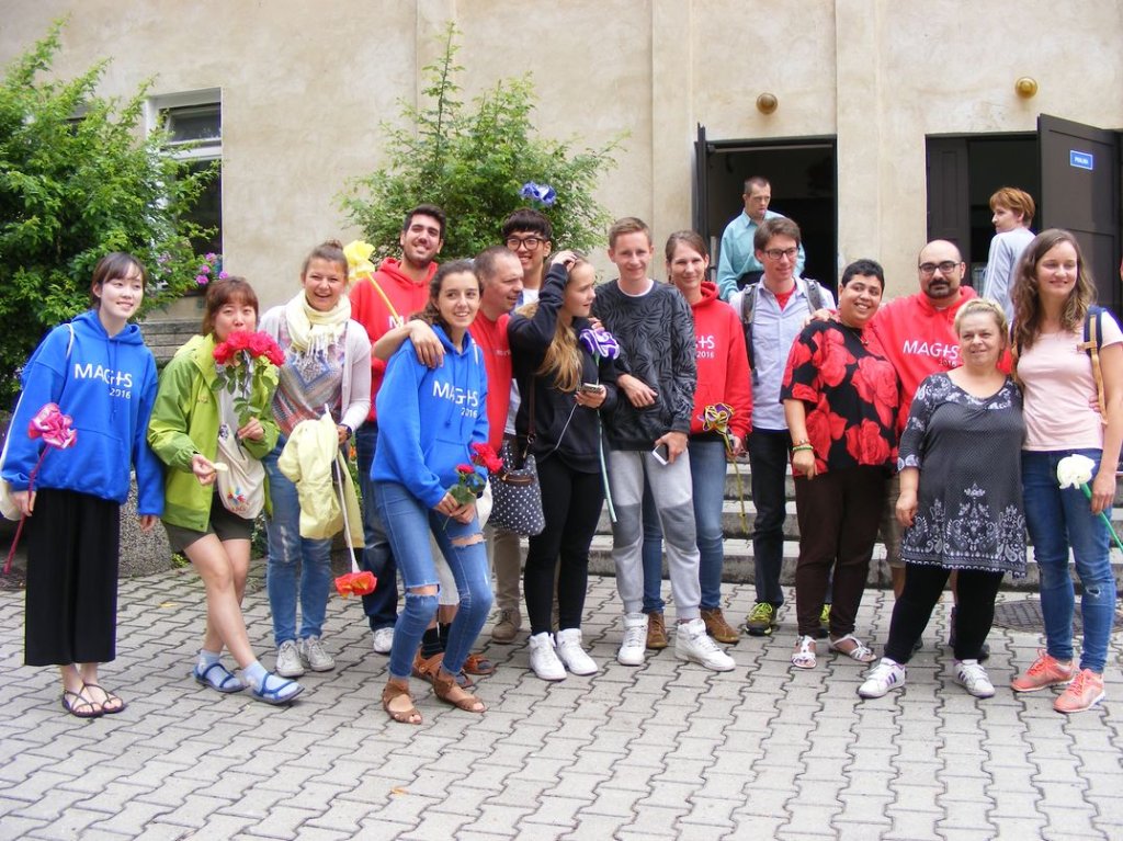 W dniach 18 – 22 lipca 2016r., gościliśmy grupę młodzieży z kilku krajów świata tj. z Korei Płd., Malty, Niemiec i Hiszpanii. Z inicjatywy Pani Katarzyny Polańskiej Wilk - Koordynatora i Lidera Projektu MAGIS, przy współpracy Dyrektora Domu Pomocy Społecznej w Podzamku Pana Zbigniewa Tura, mogliśmy odczuć wspaniały klimat Światowego Święta Młodzieży. Nasi mieszkańcy natychmiast polubili gości i z wzajemnością, nie odstępując ich dosłownie nawet na krok. Trzeba podkreślić, że ci młodzi ludzie mimo barier językowych świetnie potrafili się porozumiewać z naszymi mieszkańcami. Tych kilka dni po prostu minęło w mgnieniu oka, a wspólne zajęcia z muzykoterapii, terapii plastycznej,wielu zabaw i nauki podstawowych słówek z języków poszczególnych krajów na trwałe wryły się w serca mieszkańców i mamy nadzieję gości.