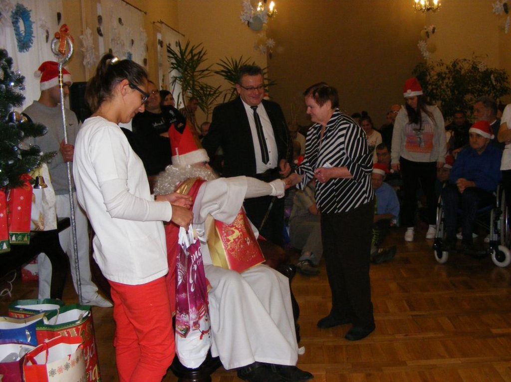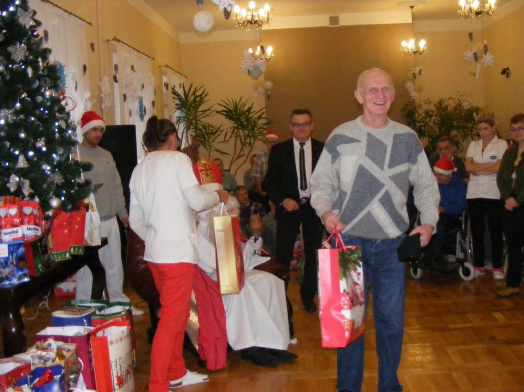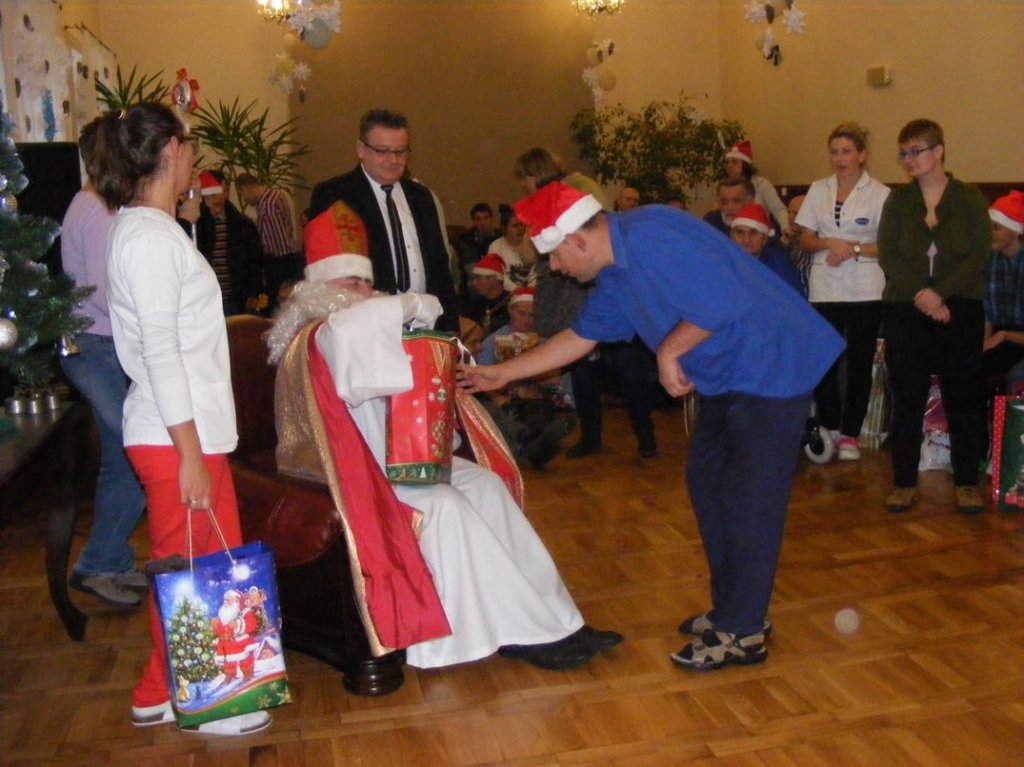 Cały rok mieszkańcy naszego Domu czekali na Świętego Mikołaja i w końcu się doczekali. Piękna choinka, masę prezentów i upominków, wszyscy bez wyjątku oczekiwali spotkania z Mikołajem.