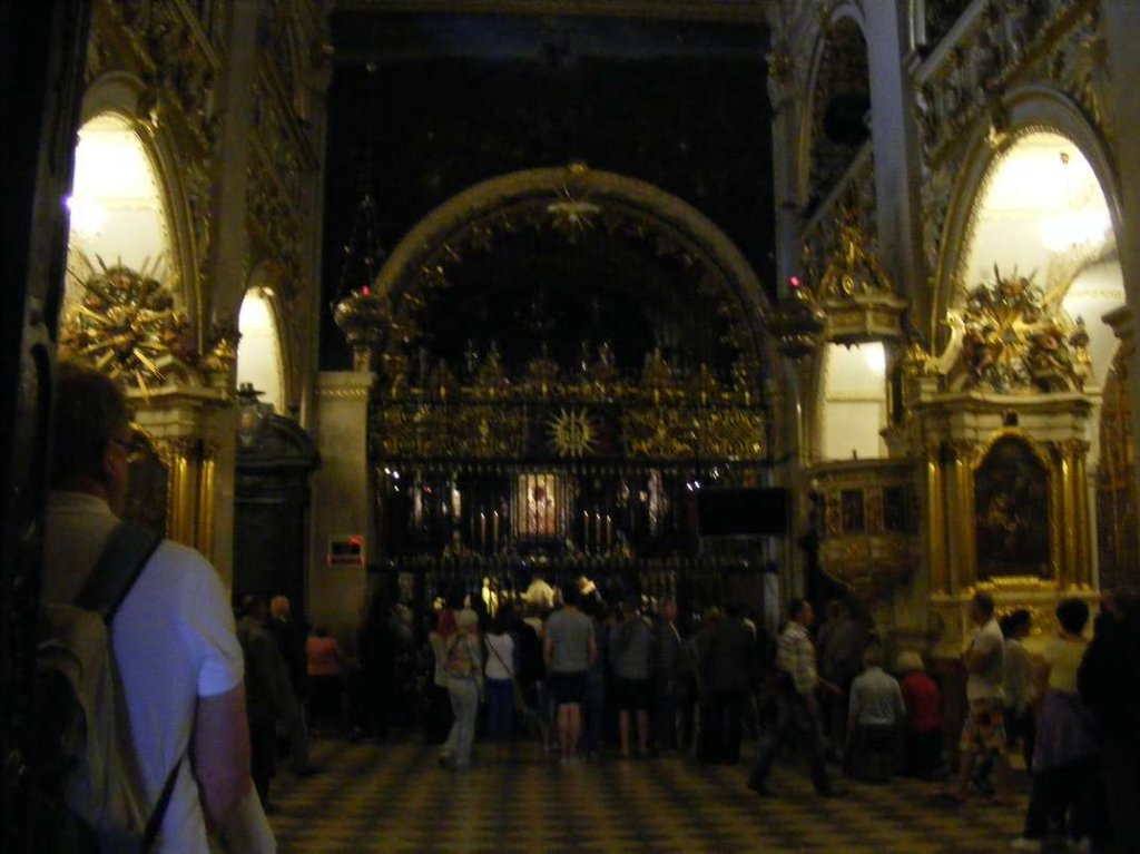 Po radośnie przeżytych chwilach udaliśmy się na Jasną Górę. Po modlitwie w Kaplicy Matki Bożej, podziwialiśmy klasztor i widoki z wałów. Zatrzymaliśmy się przy pomniku w. Jana Pawła II, przy którym wspominaliśmy chwile z życia naszego wspaniałego Rodaka. Później mieszkańcy z wielkim zaciekawieniem oglądali i podziwiali vota złożone przez darczyńców w Skarbcu. Po zakupieniu pamiątek, zjedzeniu obiadu, gofrów i lodów udaliśmy się w drogę powrotną do DPS-u. Wycieczka była bardzo udana. Wszyscy wrócili szczęśliwi i zadowoleni.