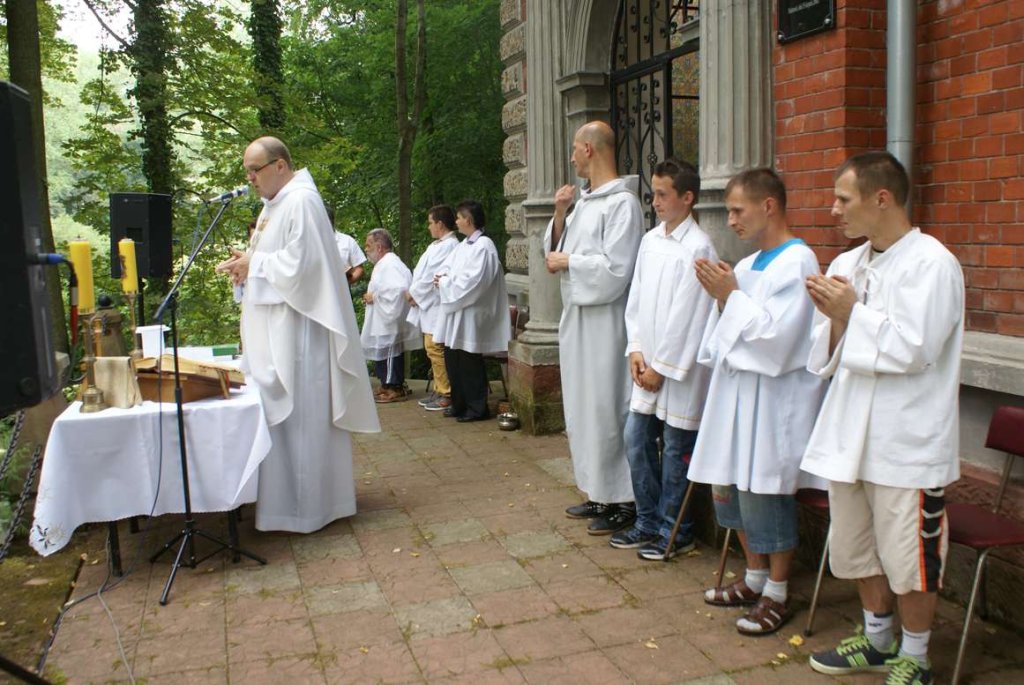15 sierpnia 2015r dziesiąty już raz odbył się festyn w sympatycznej wiosce jaką jest Podzamek. Trzeba przyznać, że pogoda w tym roku dopisała i nie padało chociaż wiele osób bardzo pragnęło deszczu ze względu na panującą suszę. Uroczystość rozpoczęła się Mszą św., celebrowaną w intencji samorządowców i mieszkańców wioski, następnie kapłan zgodnie z tradycją poświęcił zioła. Mieszkańcy naszego Domu Pomocy „silną”grupą 40 osób oraz mieszkańcy wioski dopisali, nie zabrakło też gości z innych miejscowości.