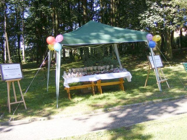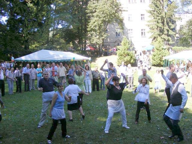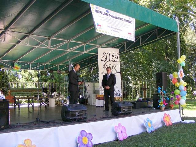 Goście mogli oglądać prace wykonane w ramach projektu „Niepełnosprawni Bez Granic" tj. ceramiczne dzwonki, świeczniki zdobione techniką decupage, filcowe słonie. Można było obejrzeć kroniki, które bardzo szczegółowo dokumentują działalność Domu. Był czas na zabawę, konkursy i poczęstunek, kiełbaski z grilla, pyszną grochówkę przygotowaną przez 22 Karpacki Batalion Piechoty Górskiej i wspaniałe ciasta upieczone przez pracowników. Uroczystość uświetnił występ zespołu „Barbušaci" Domov pod hradem Žampach, zespół „Jako tako" z Podzamka, zespół „Żaczek" z Jaszkowej oraz zespół „Ironia". Chętni mieli możliwość obejrzenia Domu.