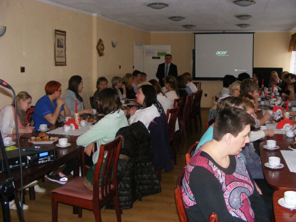 W zabytkowej sali kominkowej przy cieple rozpalonego dość wcześnie kominka mieszkańcy Domu Pomocy spotkali się na uroczystym śniadaniu wielkanocnym z udziałem Dyrektora placówki Pana Zbigniewa Tura.