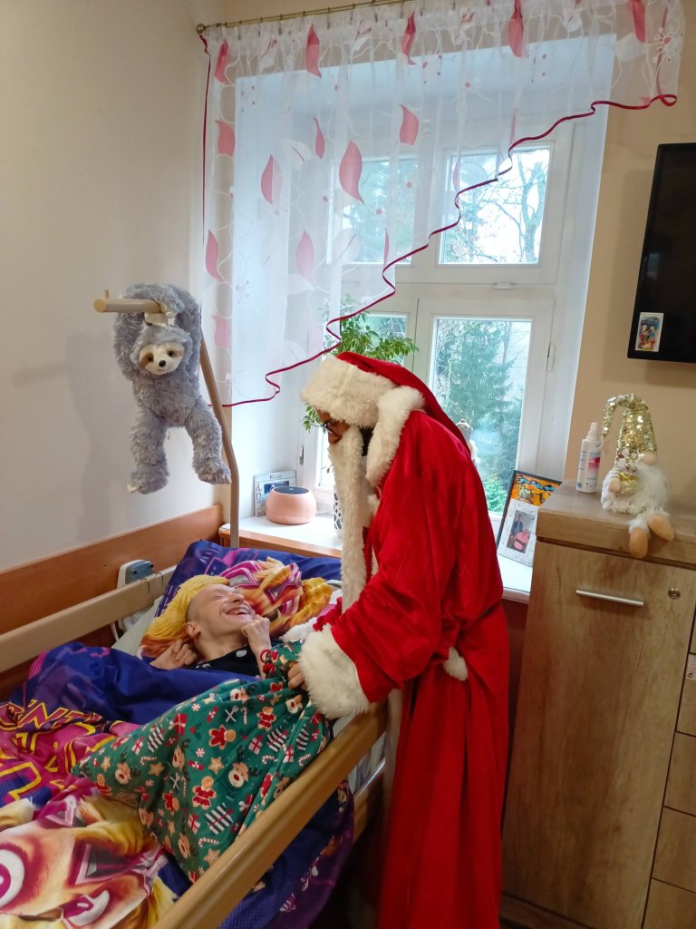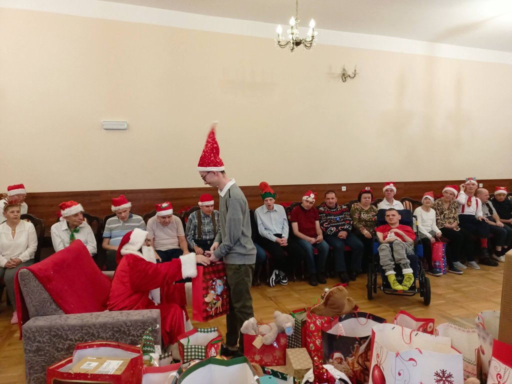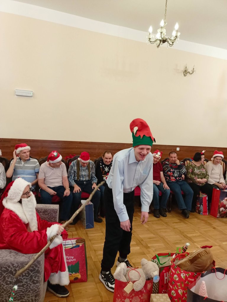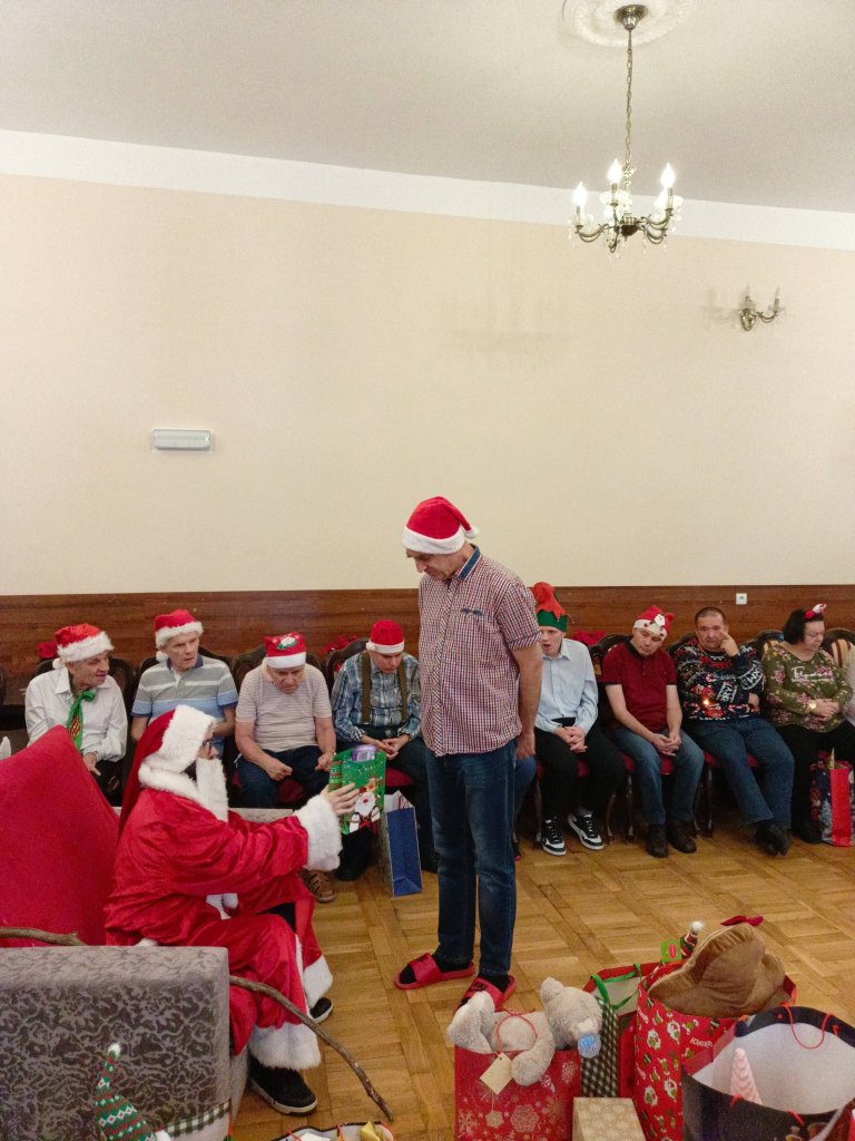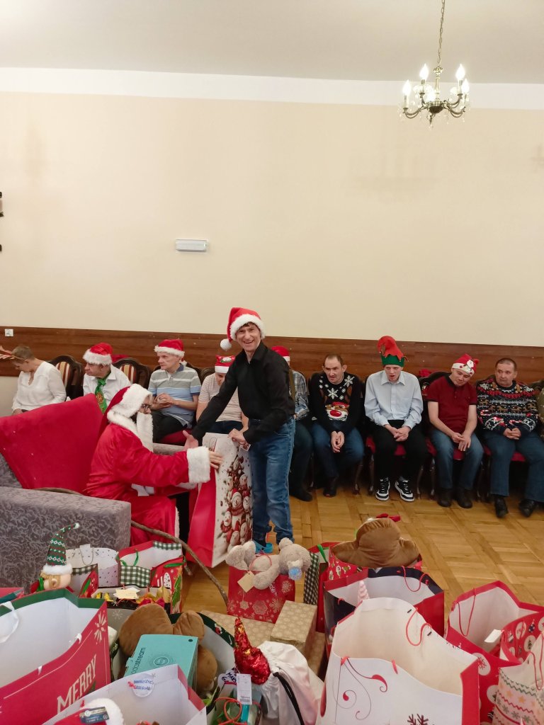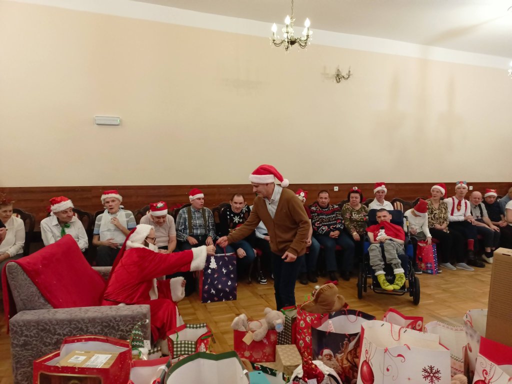 Mikołaj w towarzystwie swoich pomocników obdarował każdego mieszkańca prezentem ale również powiedział dobre słowo, uścisnął dłoń i zrobił wspólne zdjęcie.