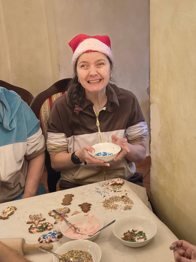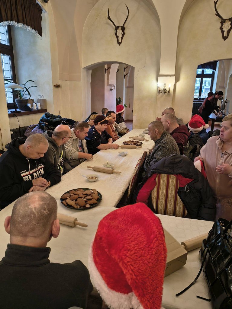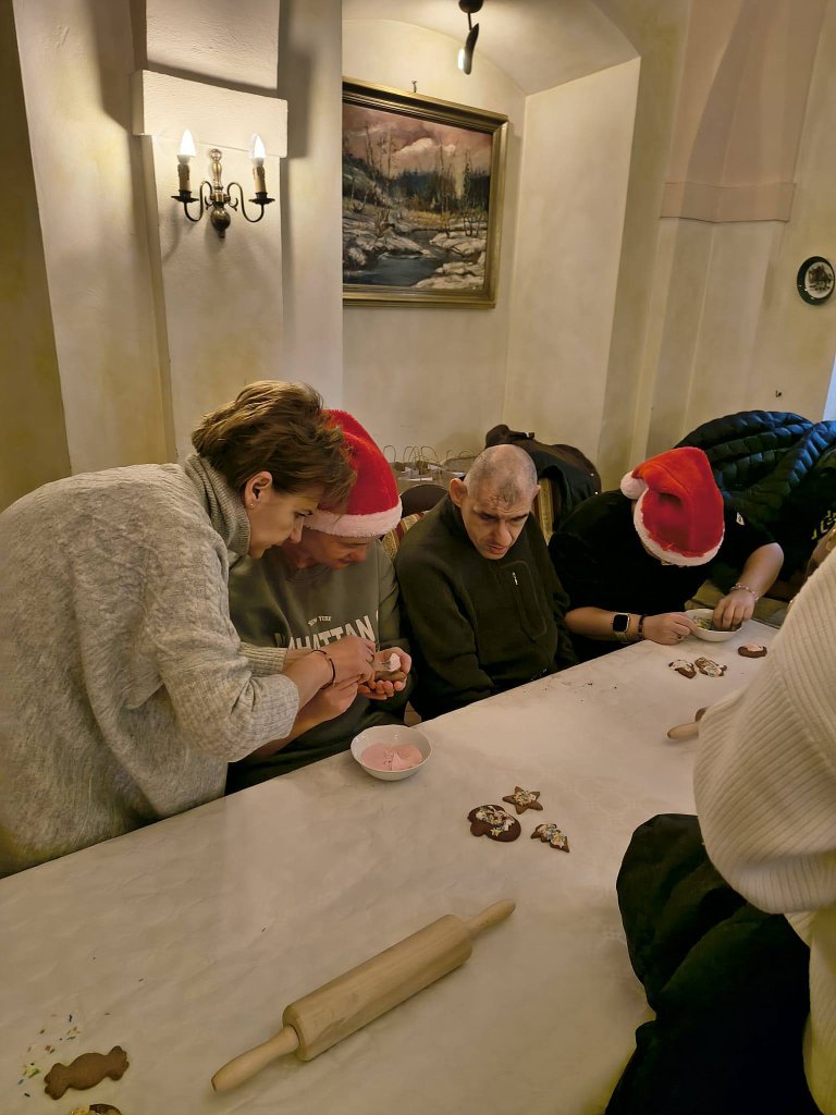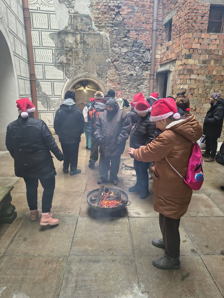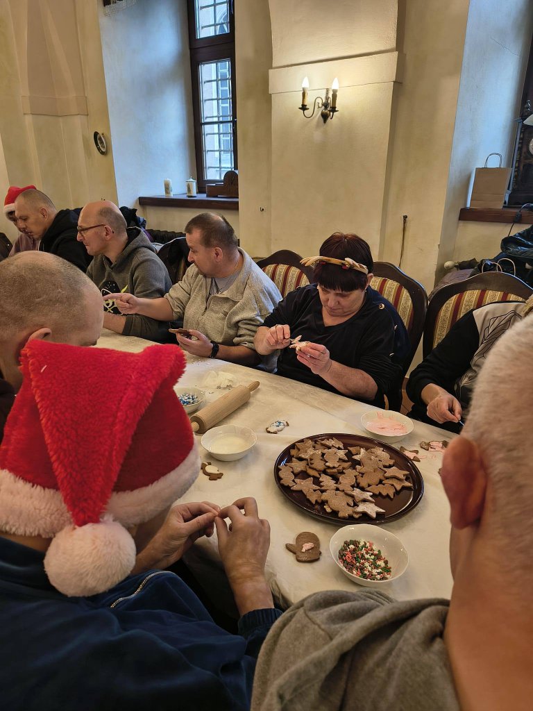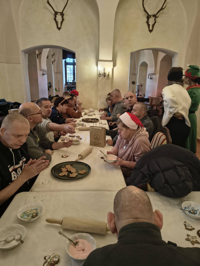 Praca tam była przepyszna, będąc w nastroju świątecznym, zaczęliśmy kolędowanie i każdy z naszych mieszkańców miał swoje 5 minut, aby kolędy w jego wykonaniu wybrzmiały na cały zamek. Po trudnej trasie po zamkowych zakamarkach oraz bardzo aromatycznych warsztatach, zostaliśmy ugoszczeni pysznymi pierogami w świątecznym nastroju wracaliśmy do domu, aby podzielić się wrażeniami oraz pysznymi piernikami.