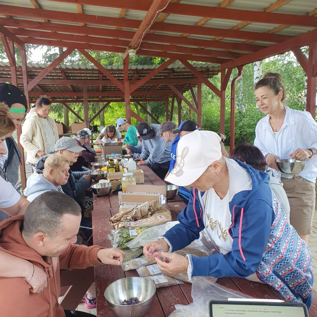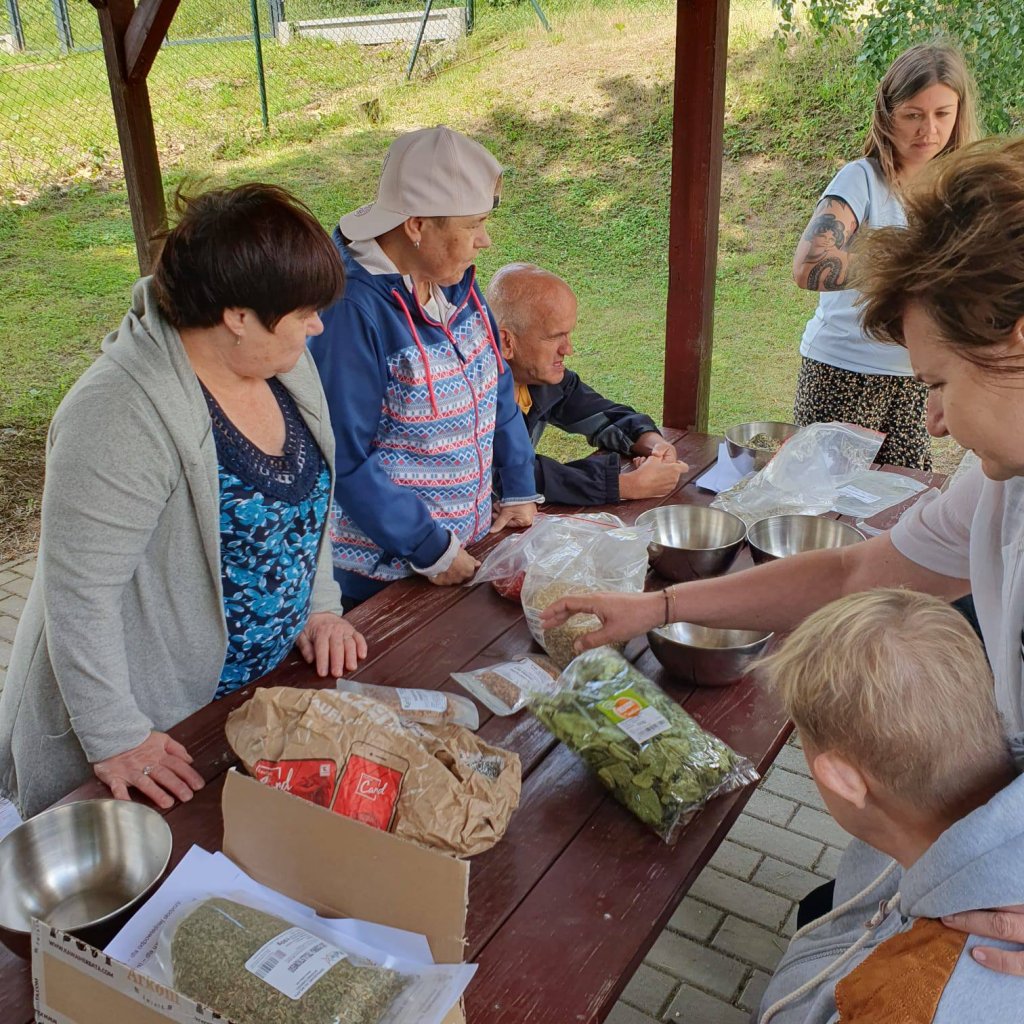 Podczas warsztatów bardzo mocno działały wszystkie zmysły. Każdy miał możliwość zapoznania się z zapachami oraz różnorodnymi fakturami ziół.