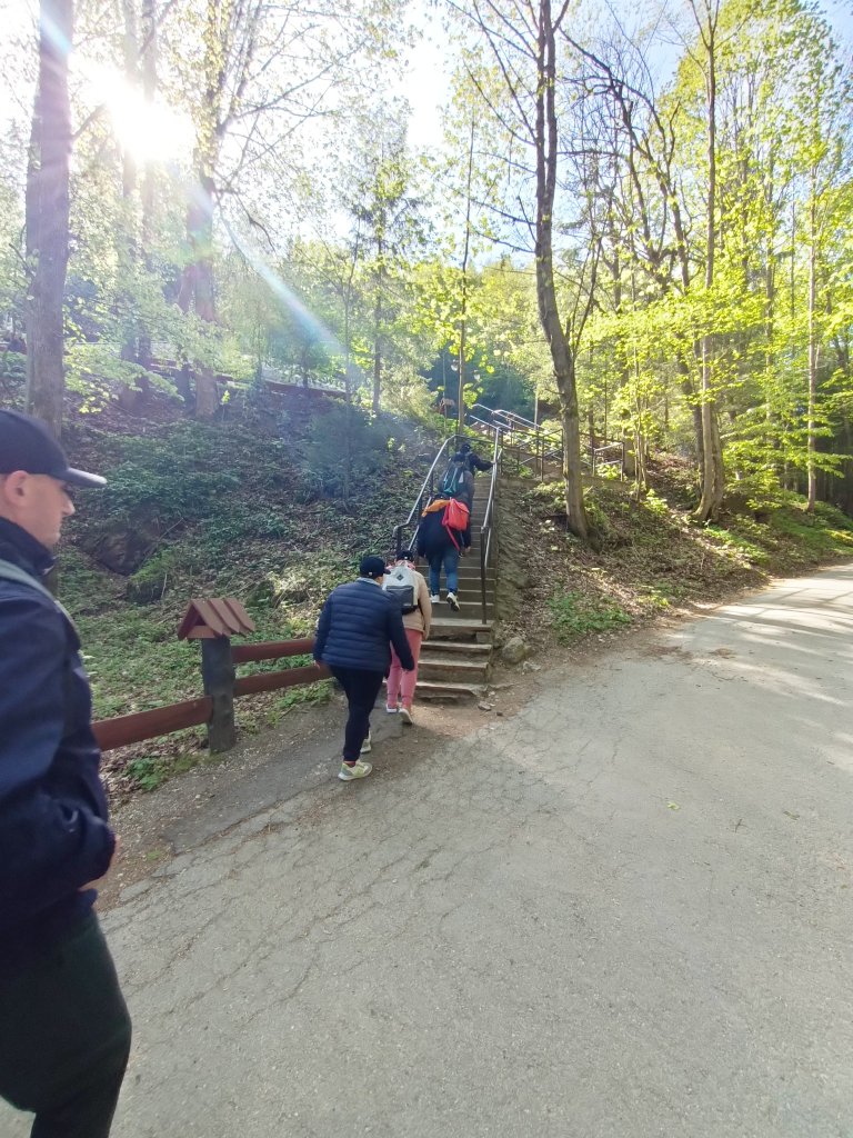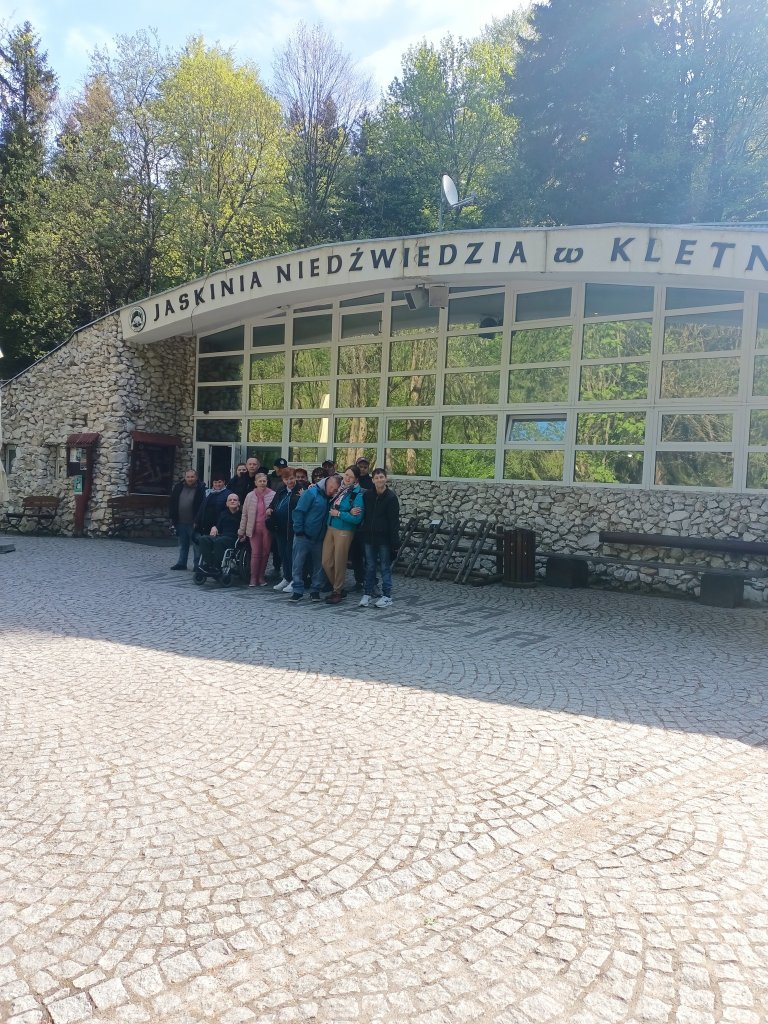 7 maja 25 naszych mieszkańców uczestniczyło w zwiedzaniu Jaskini Niedźwiedziej w Kletnie. Pogoda idealna, słonecznie, nie za ciepło, nie za zimno dlatego też dojście z parkingu do jaskini pokonaliśmy z prawdziwą przyjemnością podziwiając przepiękną przyrodę. Wspaniały kształt skał wręcz bajkowy, szumiący potok wzdłuż szlaku oraz architektoniczne obiekty m.in. kaplica św. Bernarda. Po dotarciu na miejsce podzieleni na dwie grupy rozpoczęliśmy zwiedzanie jaskini.