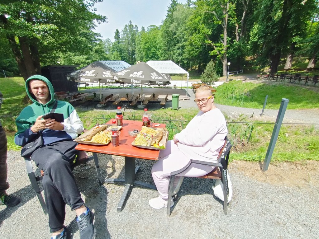 Następnie udaliśmy się na obiad na pobliskie "Stawy Biskupie", gdzie skosztowaliśmy smażonego pstrąga. Bardzo przyjemnie spędzony wtorek.