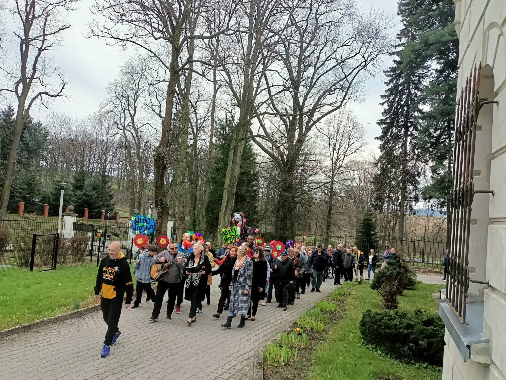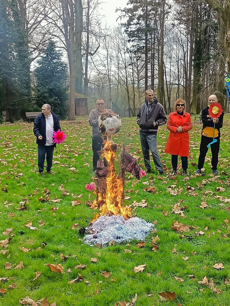 W tym roku witaliśmy wiosnę z zespołem "Chór Sołtysów". W sali kominkowej odbył się mini recital, wokół zamku przeszedł barwny korowód, następnie spaliliśmy "Marzannę" oraz zjedliśmy pyszne kiełbaski z grilla.