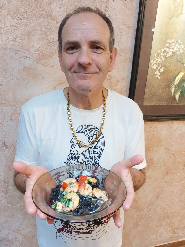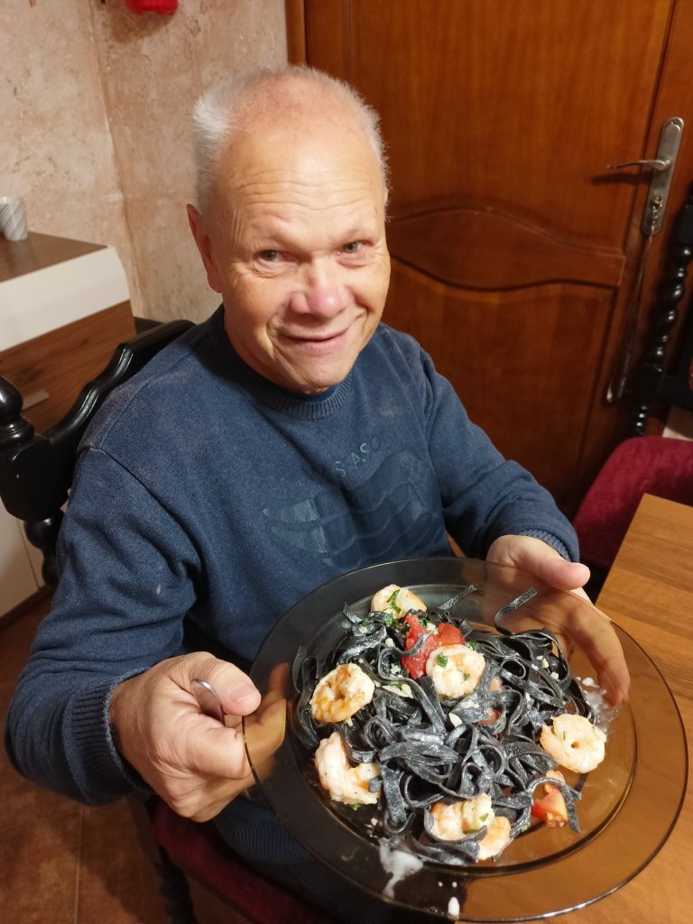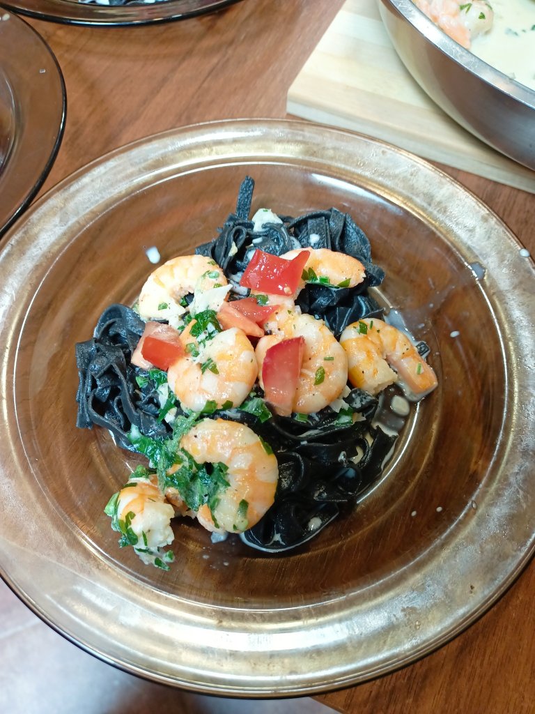 Sama degustacja wywołała wyraz zachwytu i zadowolenia. Można rzec, że danie dnia: "Krewetki w sosie czosnkowym na bazie zielonej natki pietruszki z czarnym makaronem" zapachniało nam wielkim kulinarnym światem.