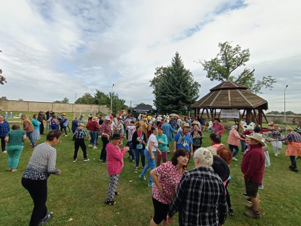 Zaskakujące spotkanie integracyjne wielu placówek z "wielkiej rodziny" osób niepełnosprawnych. Tematyczne konkursy tj. dojenie"krowy", zbieranie ziemniaków, rzucanie snopkiem siana na odległość, toczenie opony oraz zabawa taneczna.