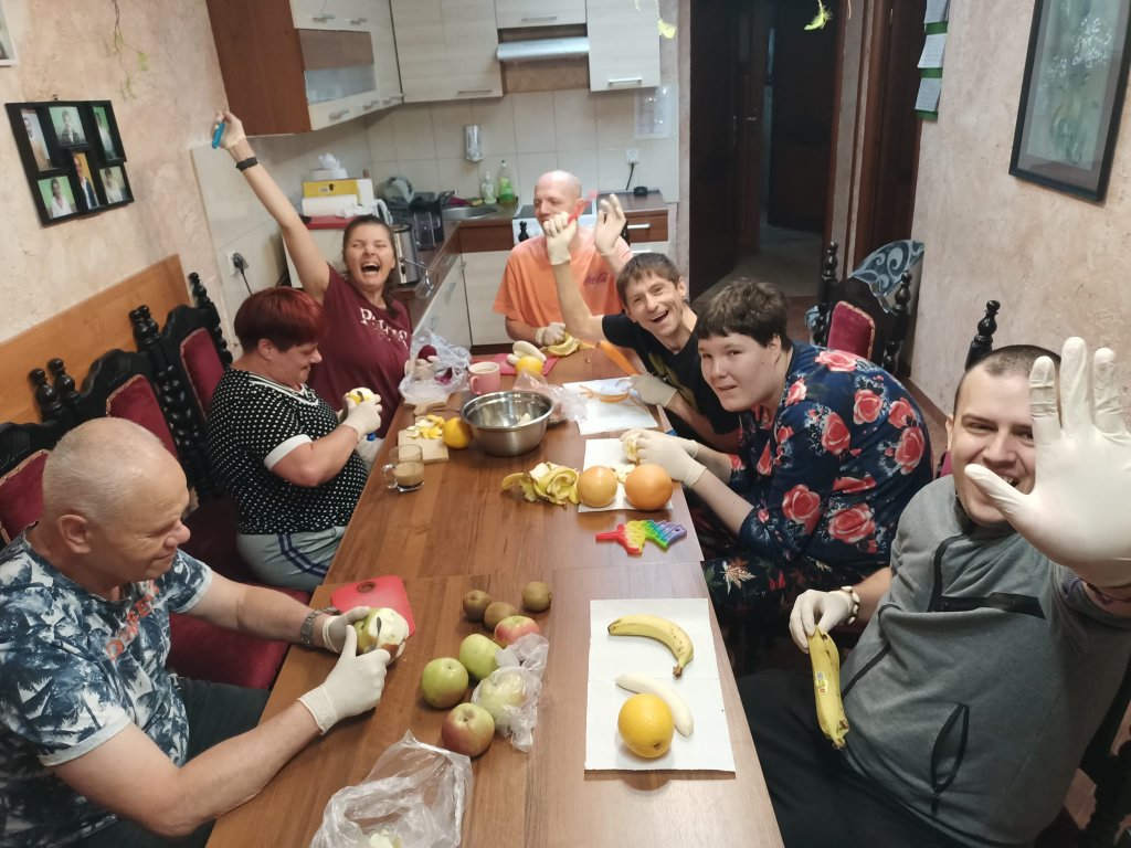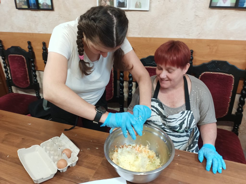 Zajęcia kulinarne na stałe weszły jako jedna z terapii stosowanych w naszym domu, a że są niezwykle smaczne i ciekawe dając uczestnikom spore pole do kreatywności i doskonalenia swoich kulinarnych umiejętności są zawsze chętnie odwiedzane przez mieszkańców. Prowadząca zajęcia Pani Paulina Wołoch zwraca szczególną uwagę na zasady higieny, angażując każdego niezależnie od jego możliwości i zdolności manualnych. Pozwala przy tym na "puszczenie wodzy fantazji kulinarnych" co sprawia, że efekty często przechodzą najśmielsze oczekiwania. Są sałatki, soki, ciasta, zupy słowem czym chata bogata jak to drzewiej bywało...